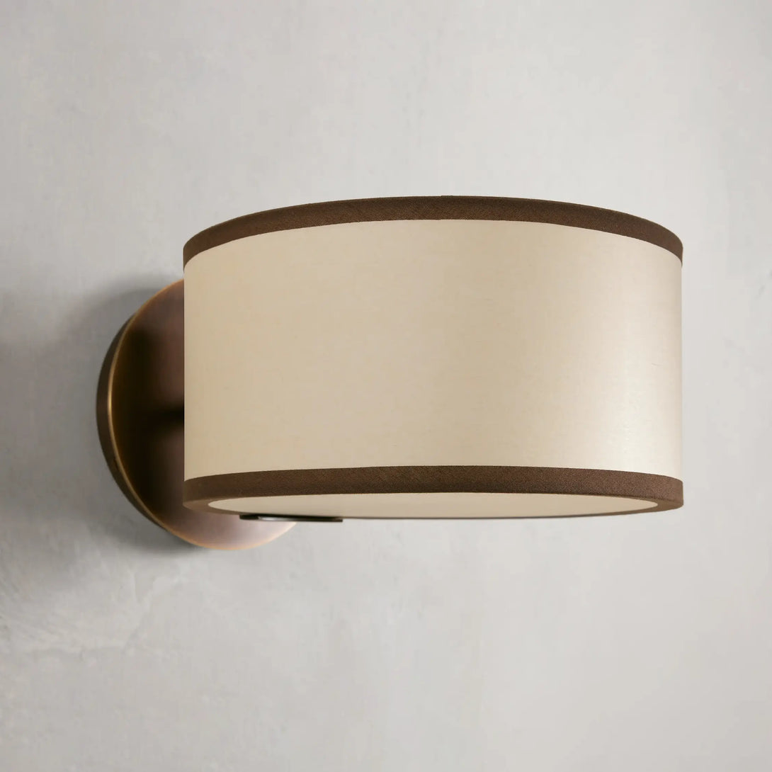 - Bronze fixtures include a white linen shade with black trim; light bronze fixtures include a cream parchment shade with brown trim.