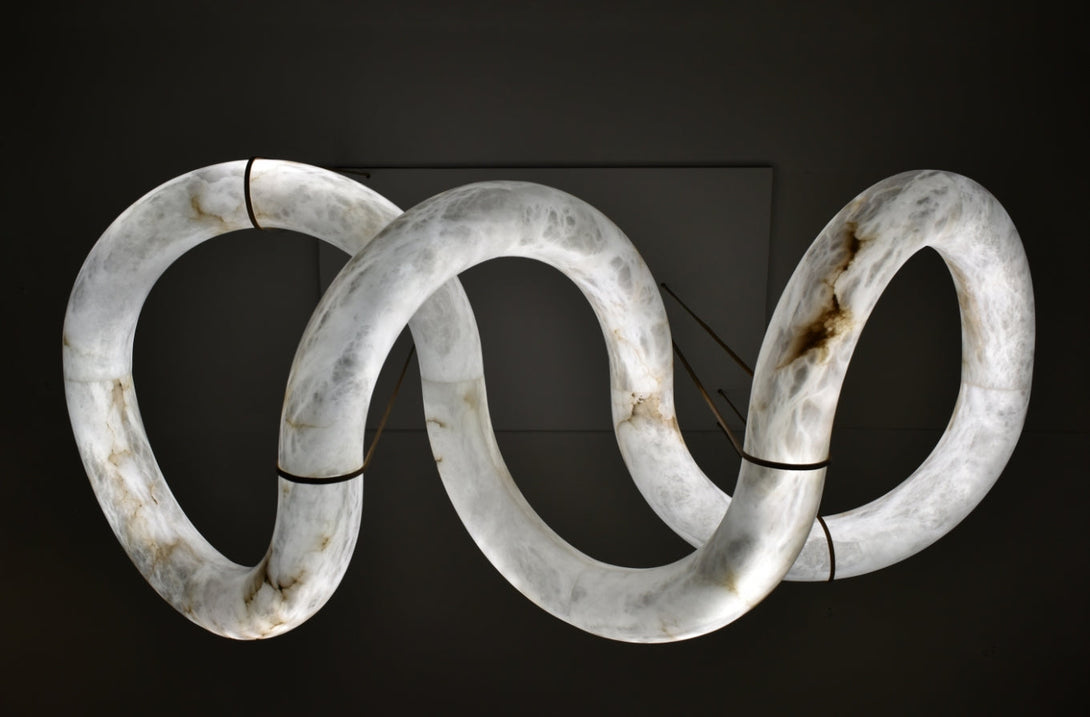 The material of alabaster is Metal & Alabaster, this series is a simple design with a modern style, its stylish style highlights its beauty and makes it give a warm and natural feeling while ensuring the light effect Feel.