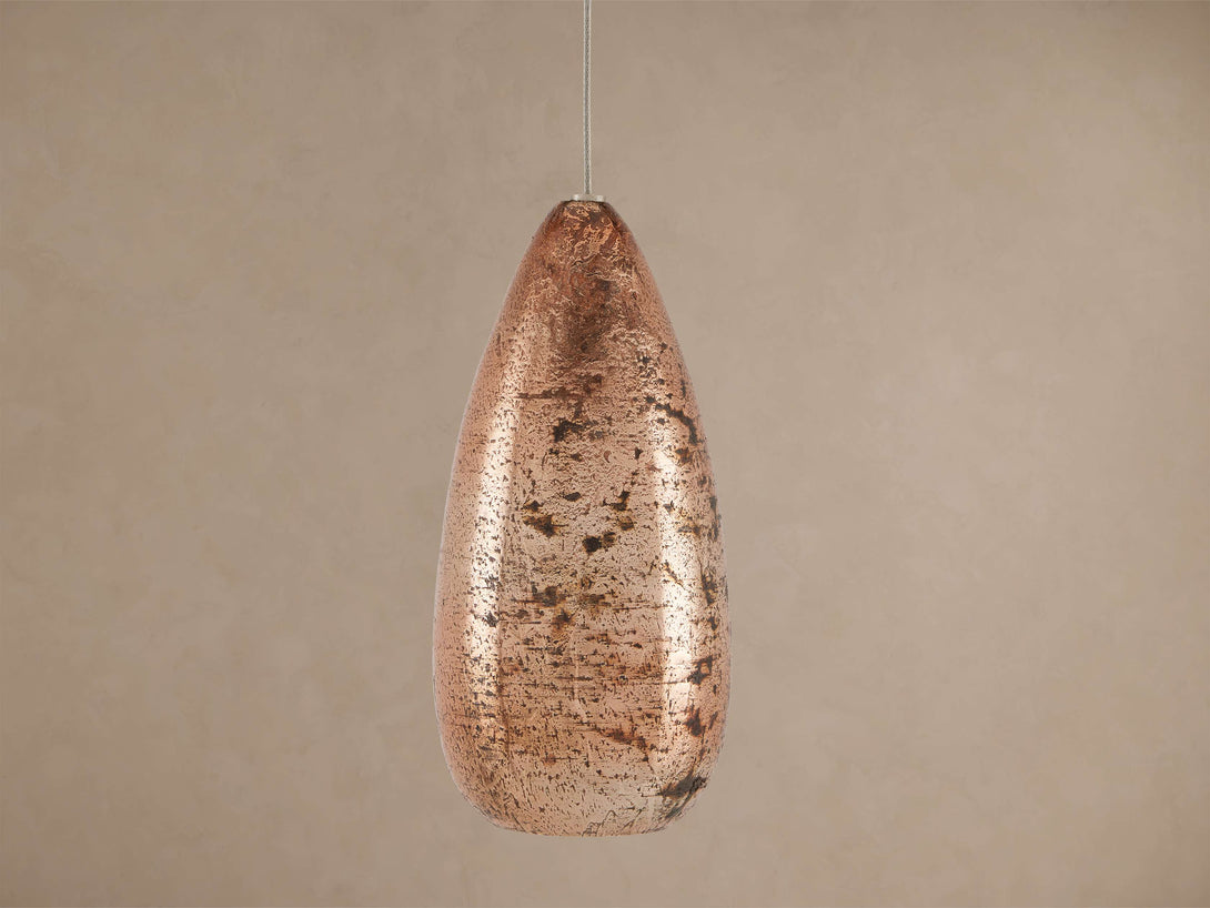 - Crafted from wrought iron and glass. Teardrop mercury glass shades showcase a warm copper exterior with a silver-finished interior.