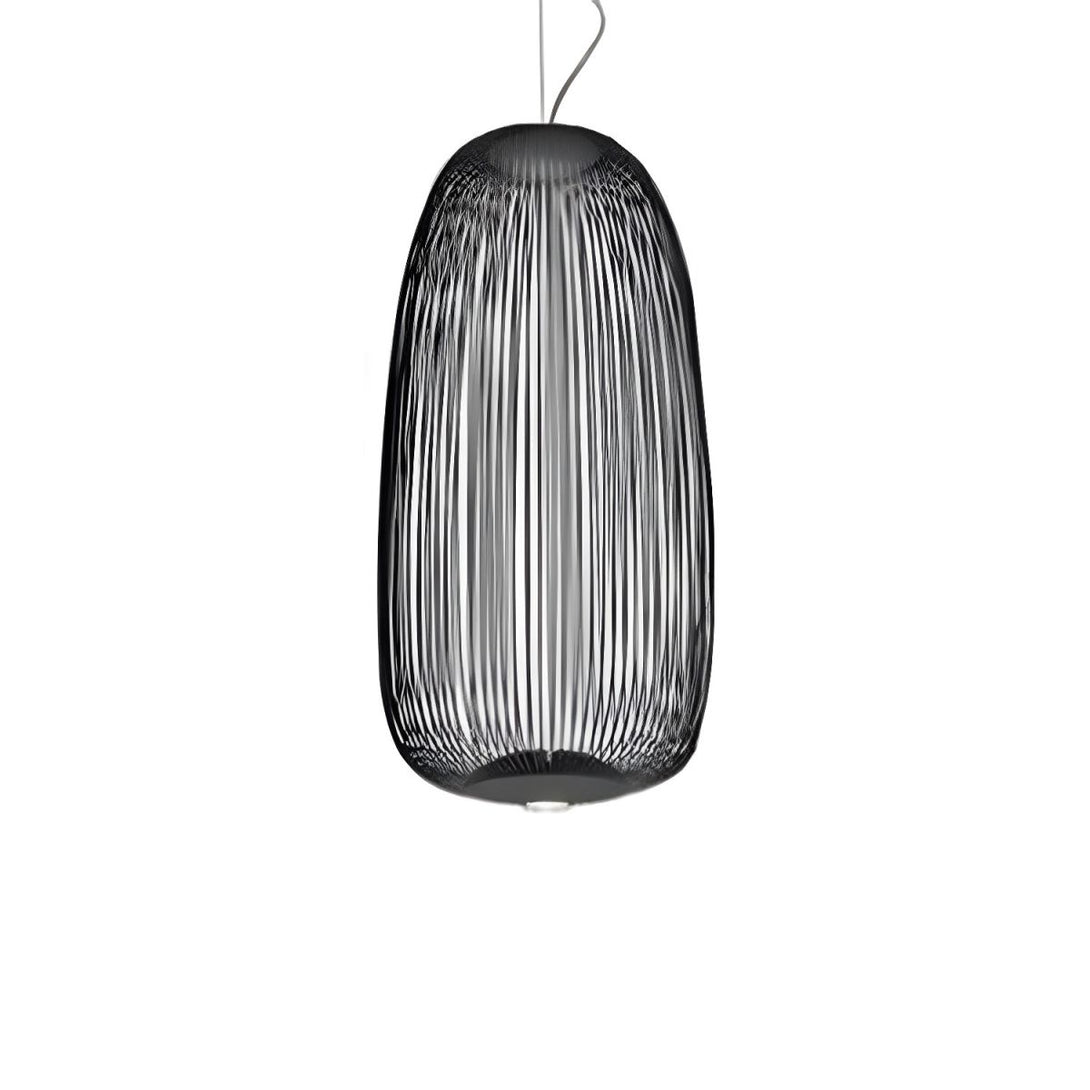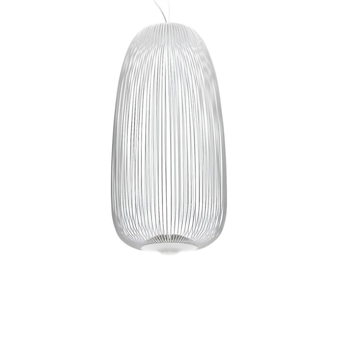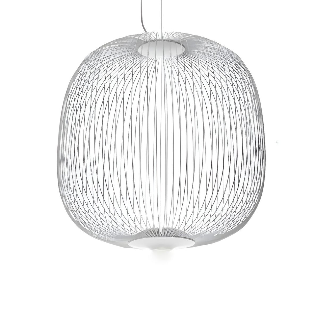 Spokes is a lightweight modern suspension lamp composed of vertical steel rods that form an elegant oval diffuser.