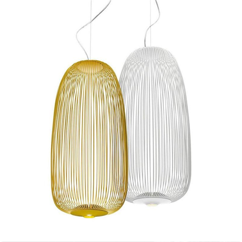 EMILY Pendant Light Bird Cage Hanging Lamp - this Suspension Light was inspired by images of antique Asian lanterns and traditional aviaries, designs that make use of vertical metal rods.