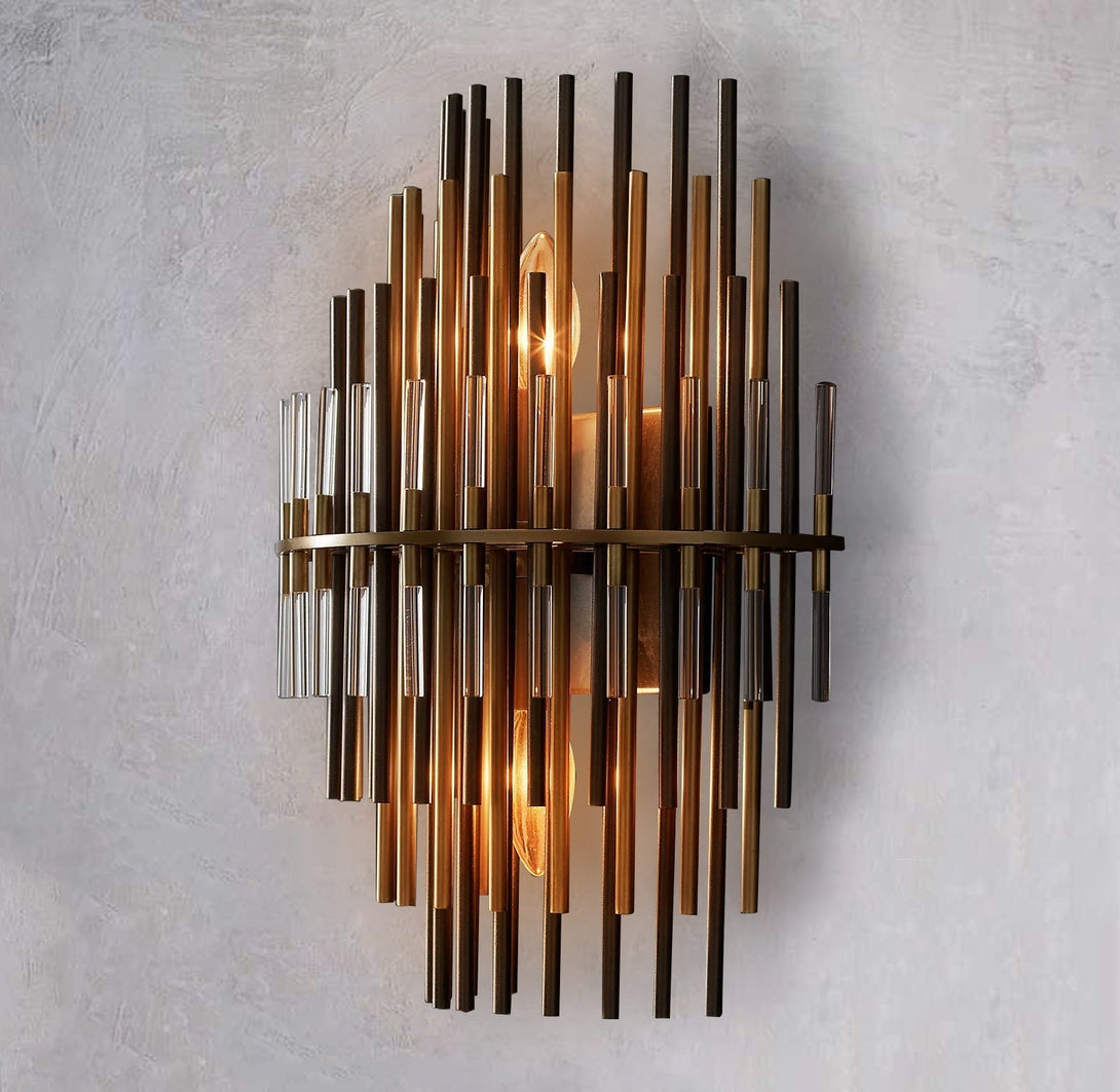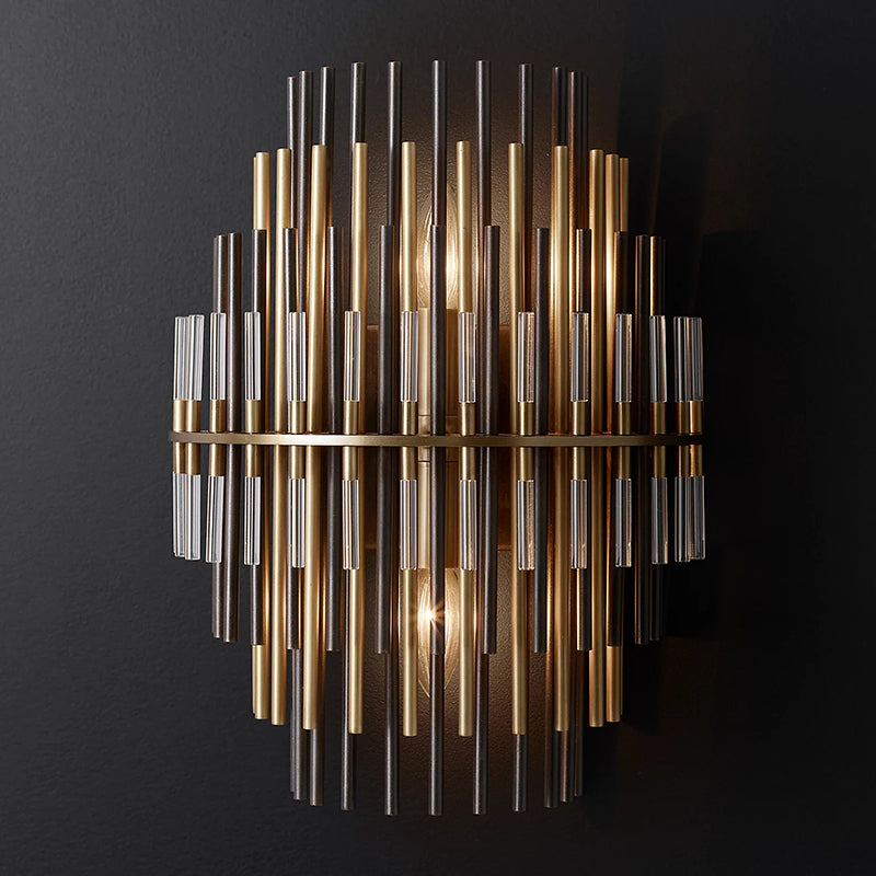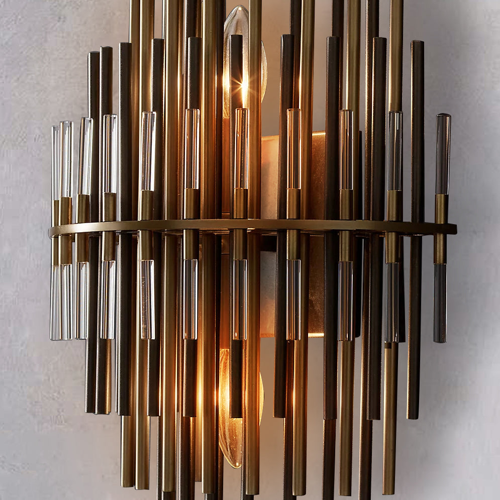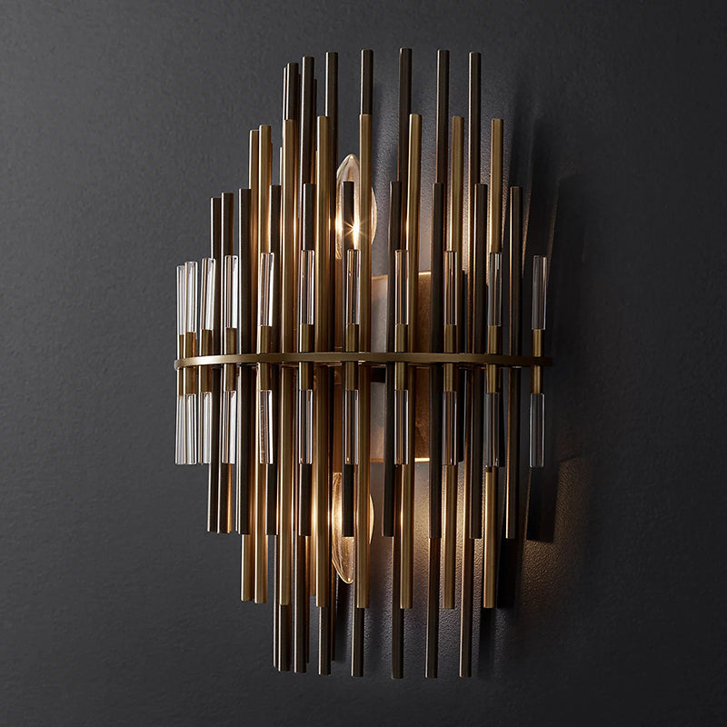 This Wall Sconce consists of a metal frame, inspired by industrial design in the 1920s, which is used for decorative lighting. The multi-layer brass tubes give people a unique feeling