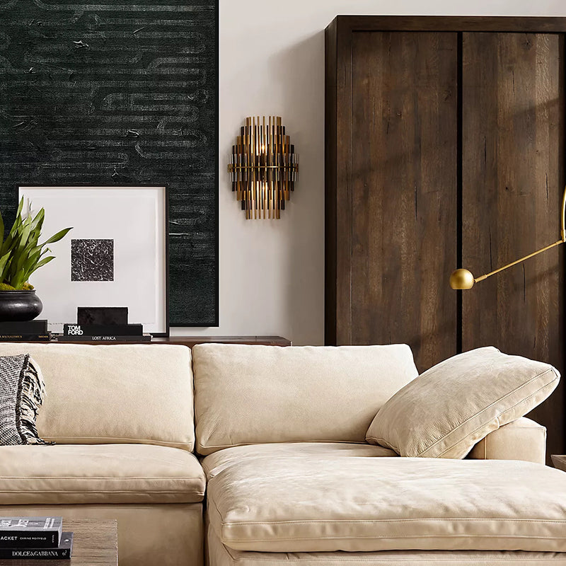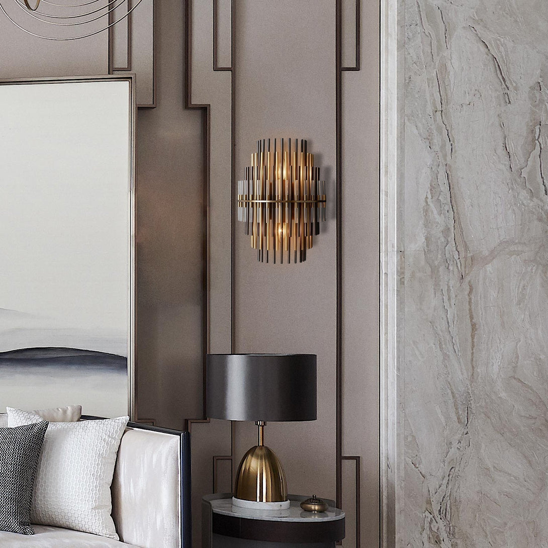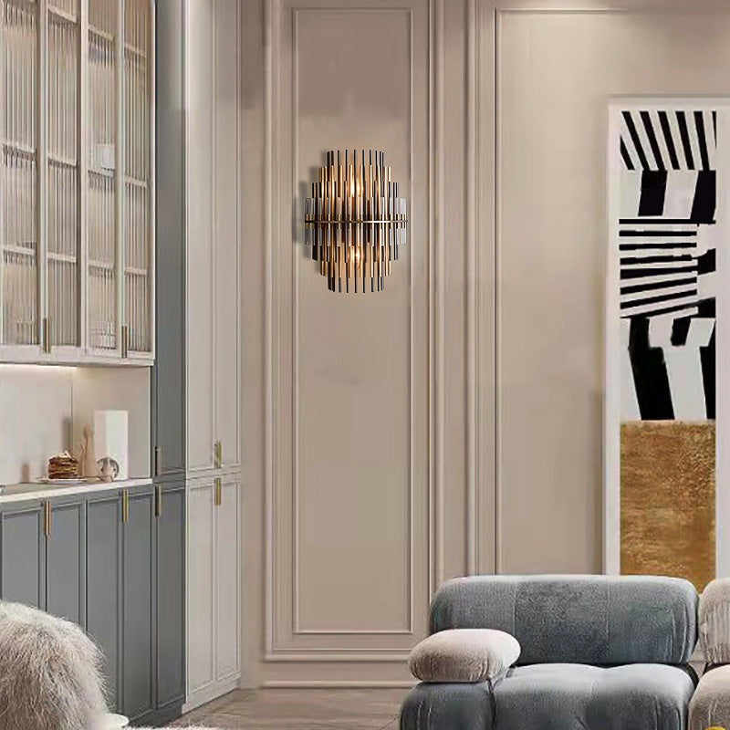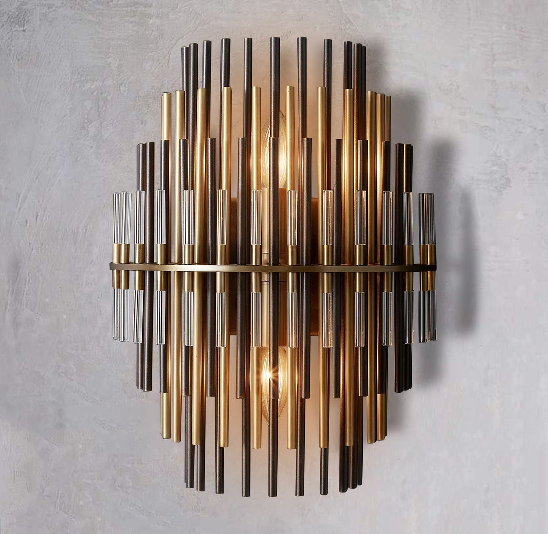 This Wall Sconce consists of a metal frame, inspired by industrial design in the 1920s, which is used for decorative lighting. The multi-layer brass tubes give people a unique feeling