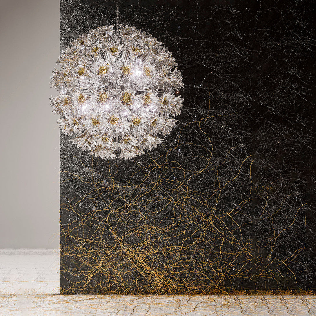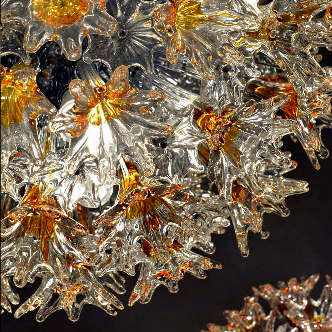 The Espe chandelier is a wonderful combination of creative design and glassmaking craftsmanship, and a groundbreaking development in lighting technology that keeps it at the forefront of luxury lighting today. The clear, hand-blown glass incorporates an opaque texture near the centre of the luminaire, creating a stunning optical effect. Available in Crystal and Crystal with Yellow Amber, both with chrome accents.