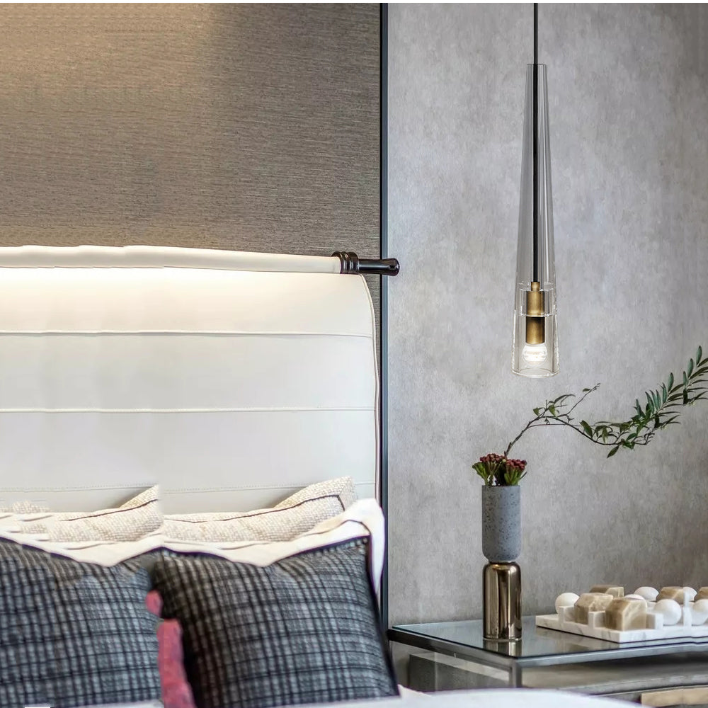 Eudora Pendant is machined from solid brass. All parts are hand polished and patina?€?d. The lead crystal shade is turned and polished by hand.
