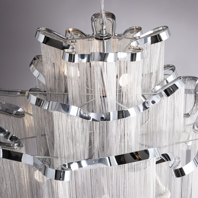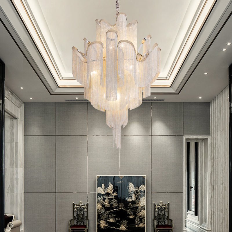 The Eyra Chandelier is an exemplary glamorous lighting solution that fuses luxury and modernity to give the ideal statement lighting. This suspension delights the eyes with its opulent appearance and graceful aluminum fixture in a timeless gold or silver finish Eyra is perfect for any luxury hospitality or residential structure, exuding elegance and quality and creating a wonderful ambiance wherever it is used.