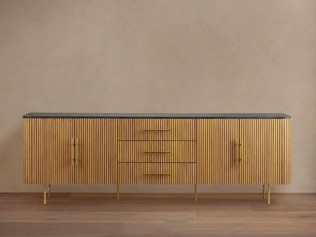 - Levelers on the bottom of each leg ensure sideboard sits evenly on uneven floors.