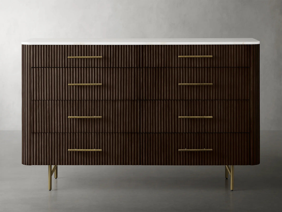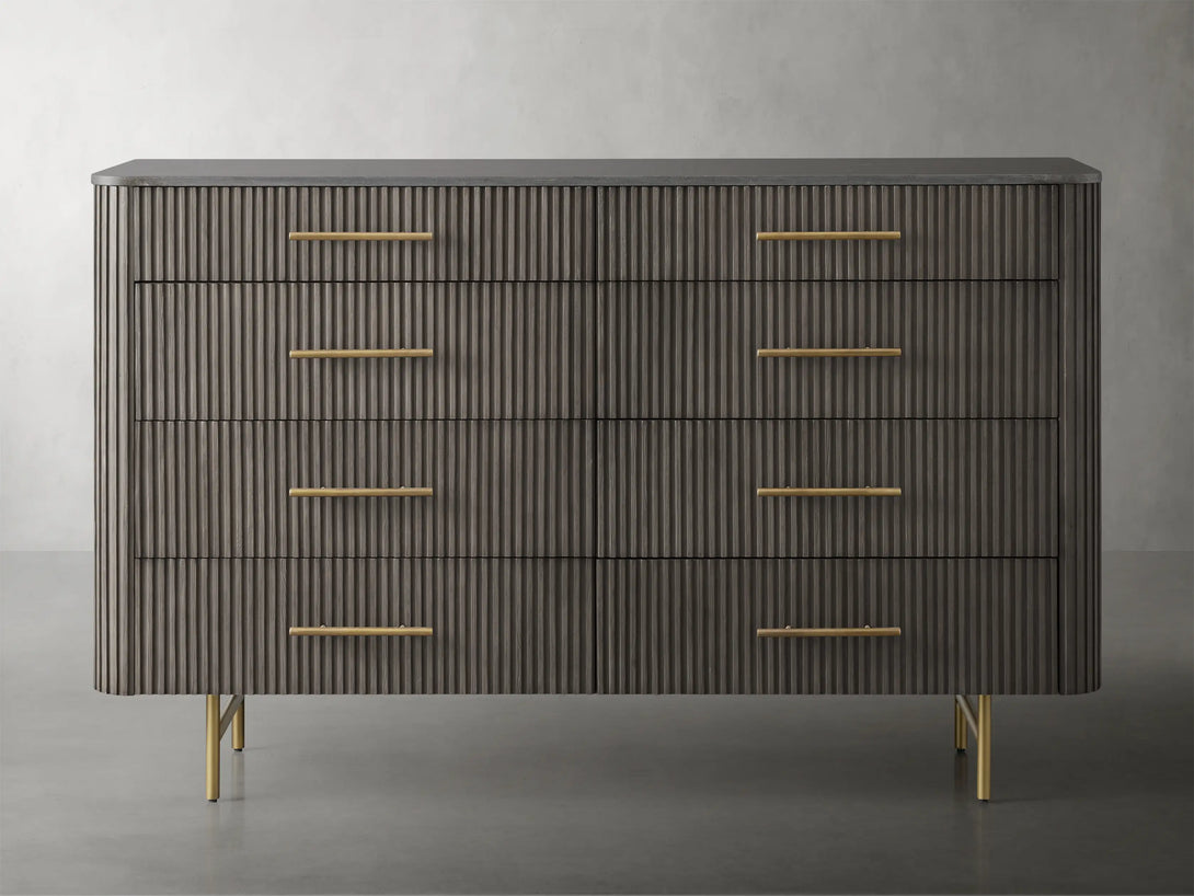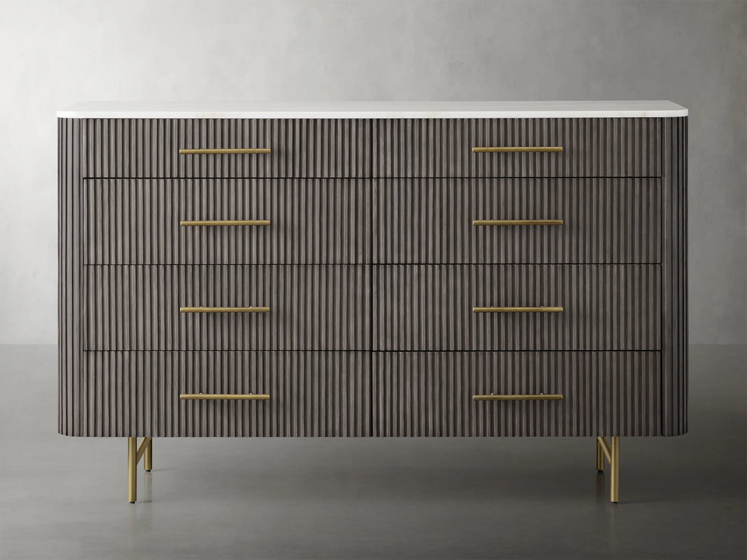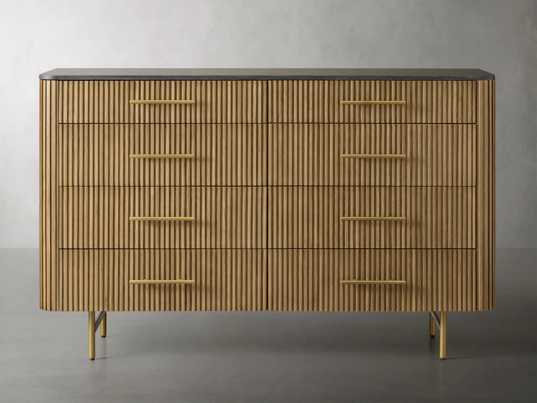 Our Finnley Bedroom Collection showcases a stunning mixed-material design, inviting elevated style into your bedroom oasis. Hand-finished pine from Finland or white oak wood is luxuriously accented by reeded oak detailing complemented by stone tops. The result is an eclectic-yet-chic bedroom suite that easily fits into the aesthetic of your home.
