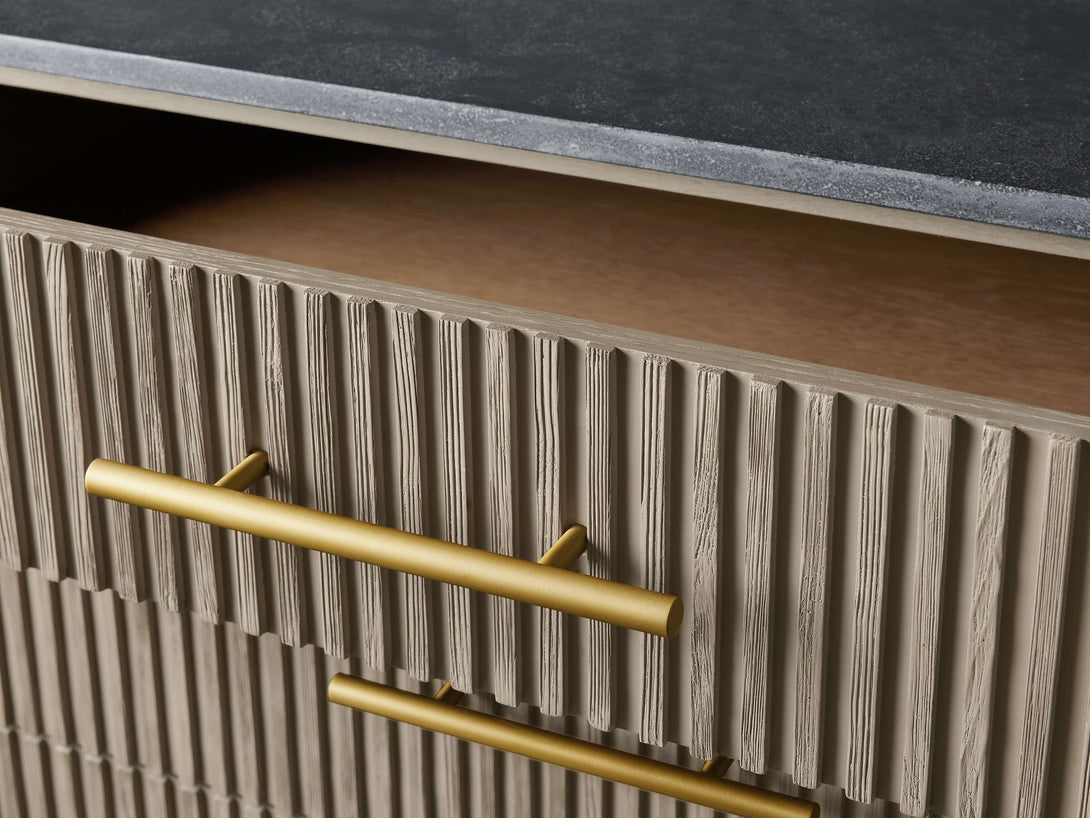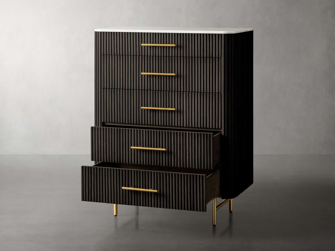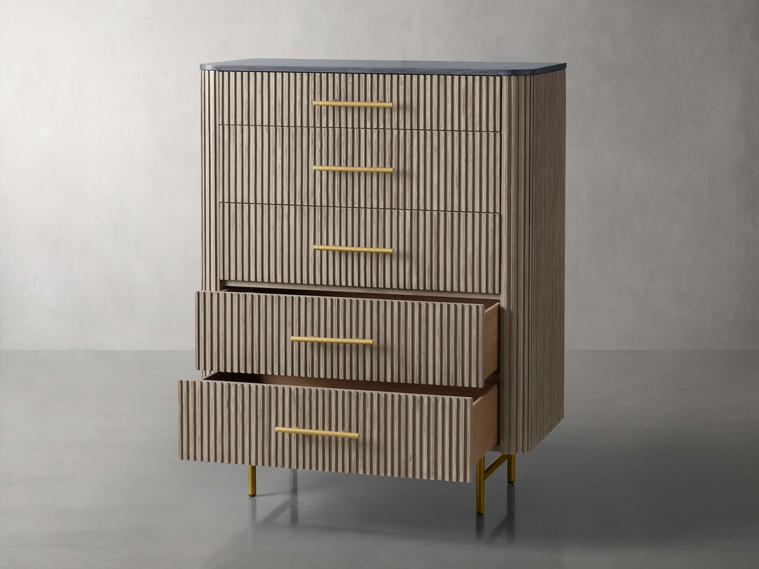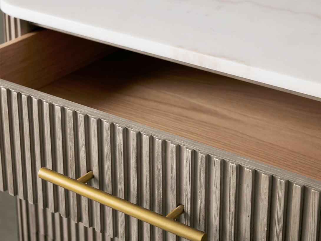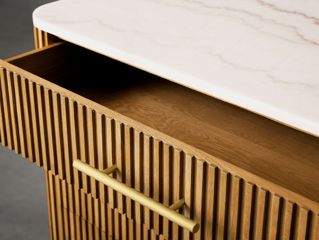 - Craftsman-built pieces feature reinforced mortise-and-tenon joinery for added strength and stability and are complemented by your choice of Carrara marble, white marble, or bluestone tops.