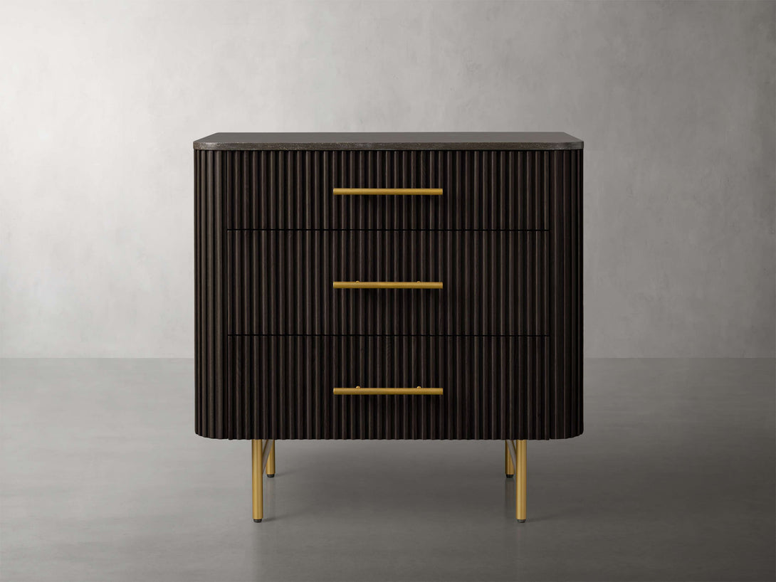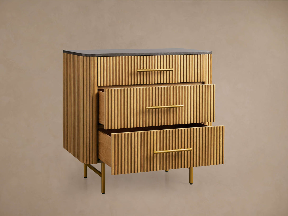 - Wood surfaces are hand-stained with a striking finish and protective lacquer for subtle sheen.