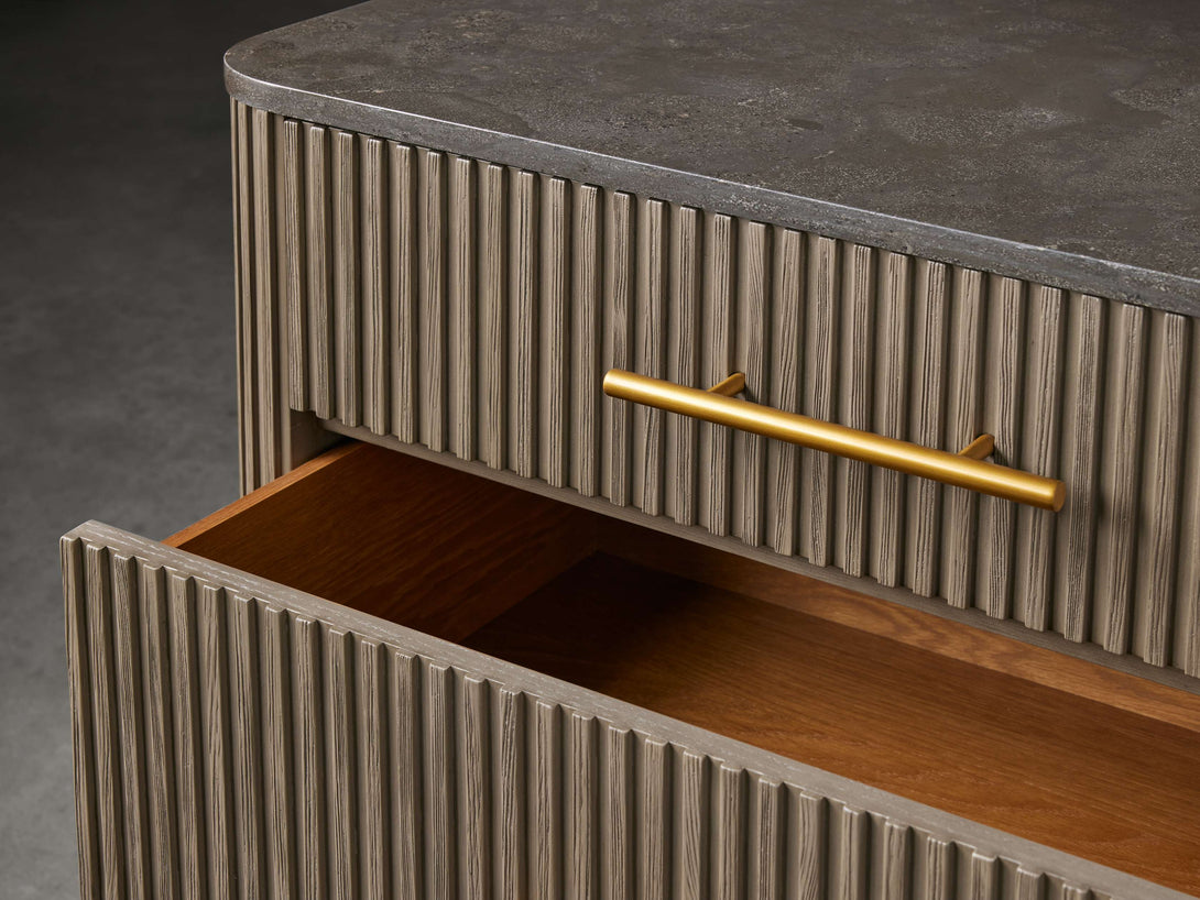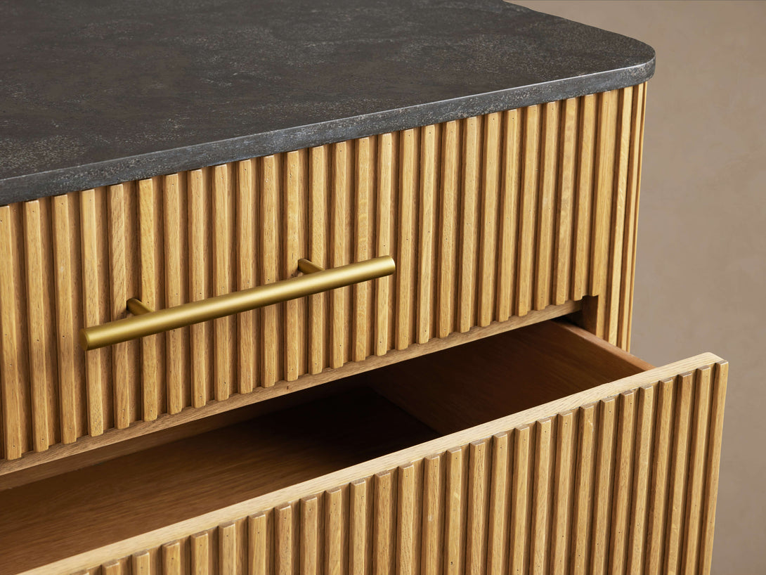 - Craftsman-built pieces feature reinforced mortise-and-tenon joinery for added strength and stability and are complemented by your choice of Carrara marble, white marble, or bluestone tops.