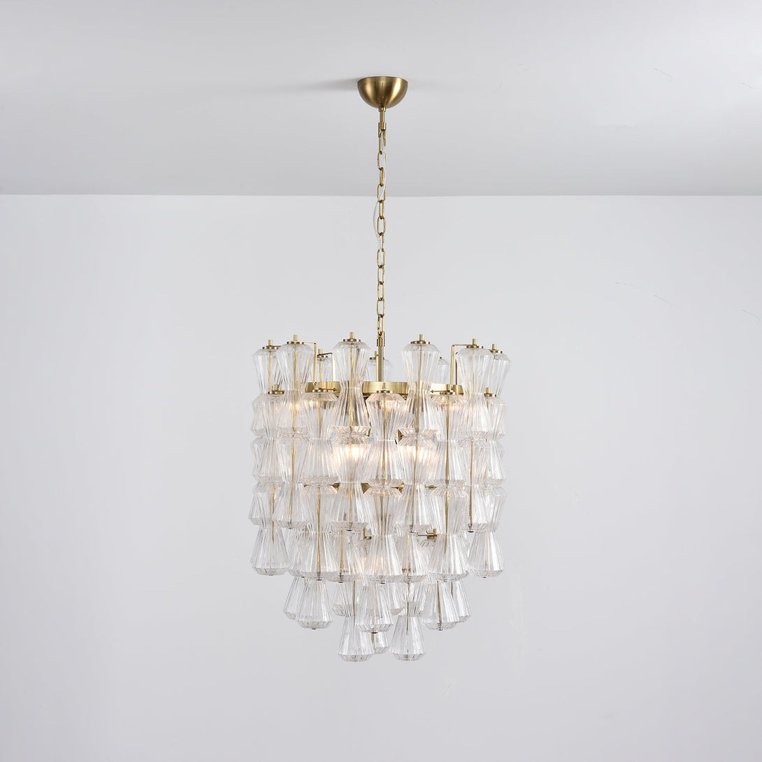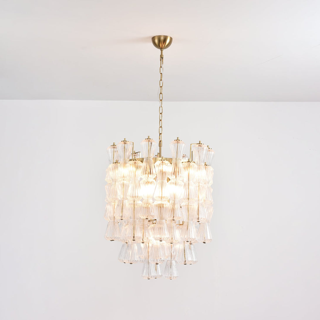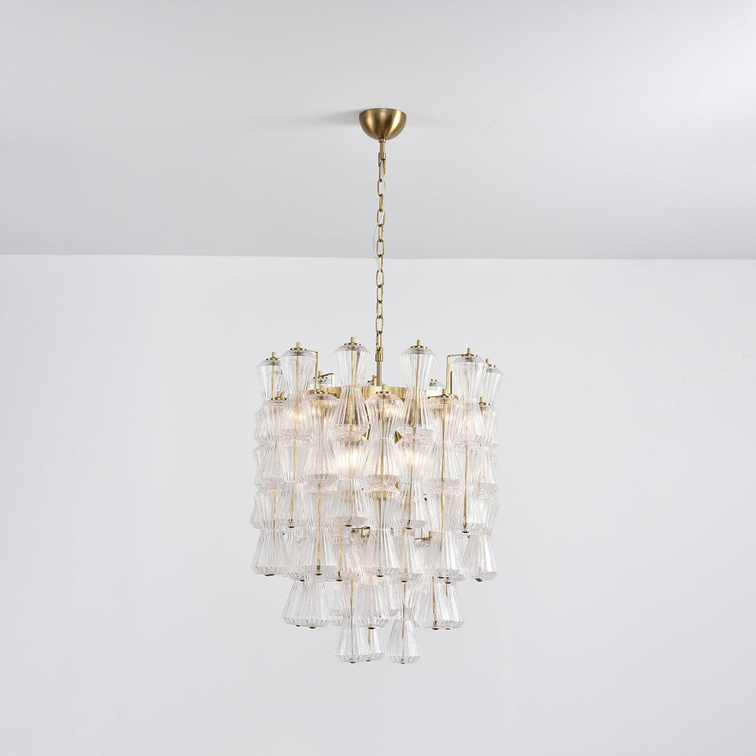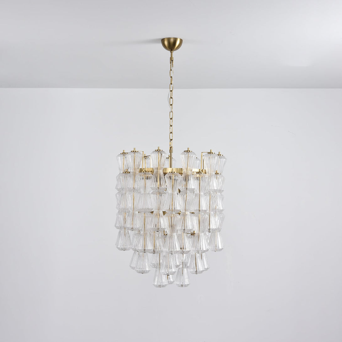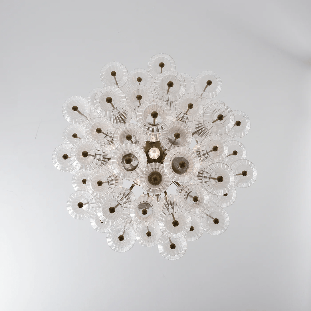 Inspired by floral silhouettes and classic Italian elegance, the Florenzia Chandelier features hand-blown Murano glass elements in a symmetrical cascade. Each glass piece resembles a refined flower bud, creating a luminous composition that blooms with light.