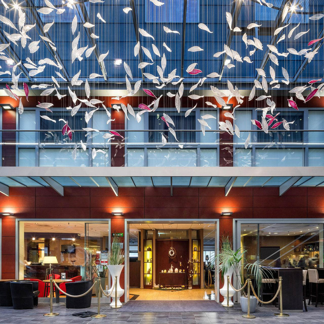 The Flying Glass Feather Chandelier brings a touch of magic to any space. Inspired by the lightness and softness of feathers, its glass components reflect light beautifully. Experience its romantic charm and let its floating light sweep away your worries. Perfect for lobbies, shopping malls, and other spaces.