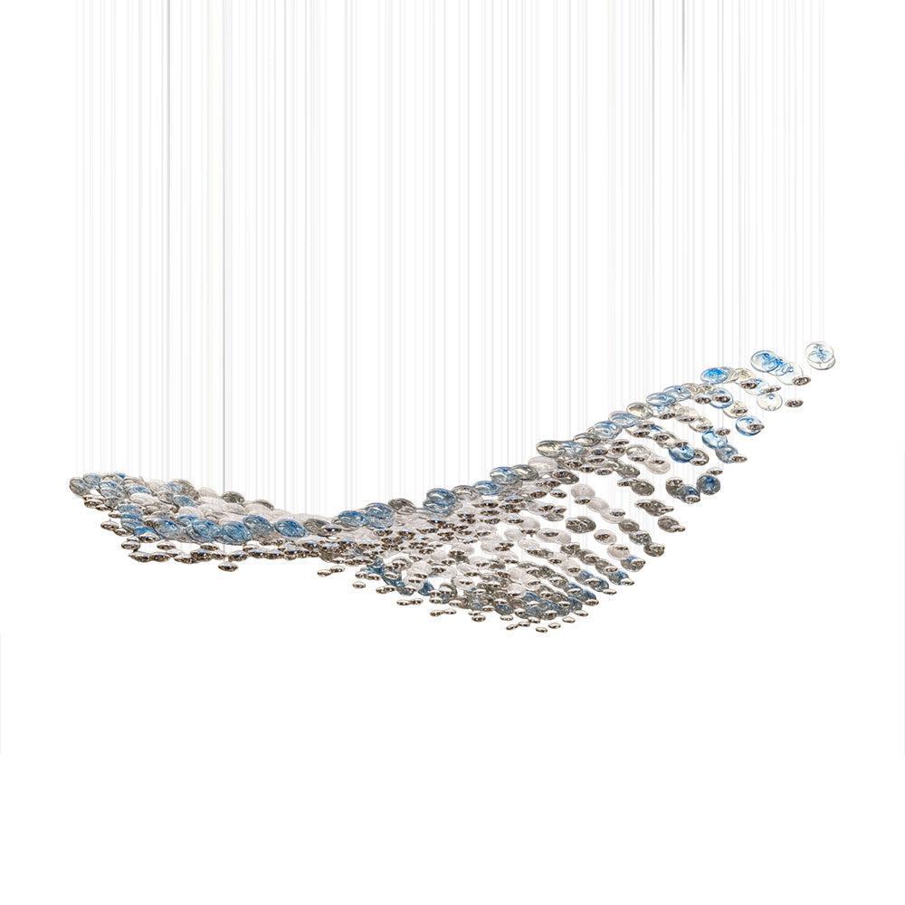 Elevate your living space with the Flying Surge Chandelier. Crafted by master glassblowers, this unique piece showcases stunning craftsmanship inspired by lakeside views. Add a touch of elegance and sophistication to any room with this handcrafted chandelier.
