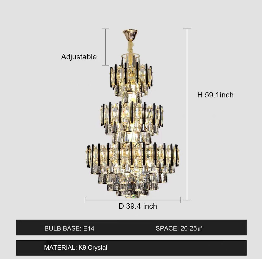 The whole light body is made of high-quality K9 crystal and metal. It is designed into a luxury modern style. It is absolutely stunning no matter light turns on or not.