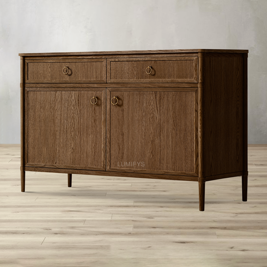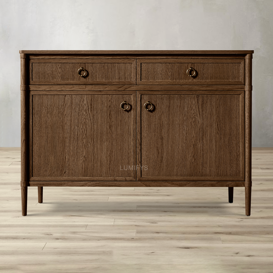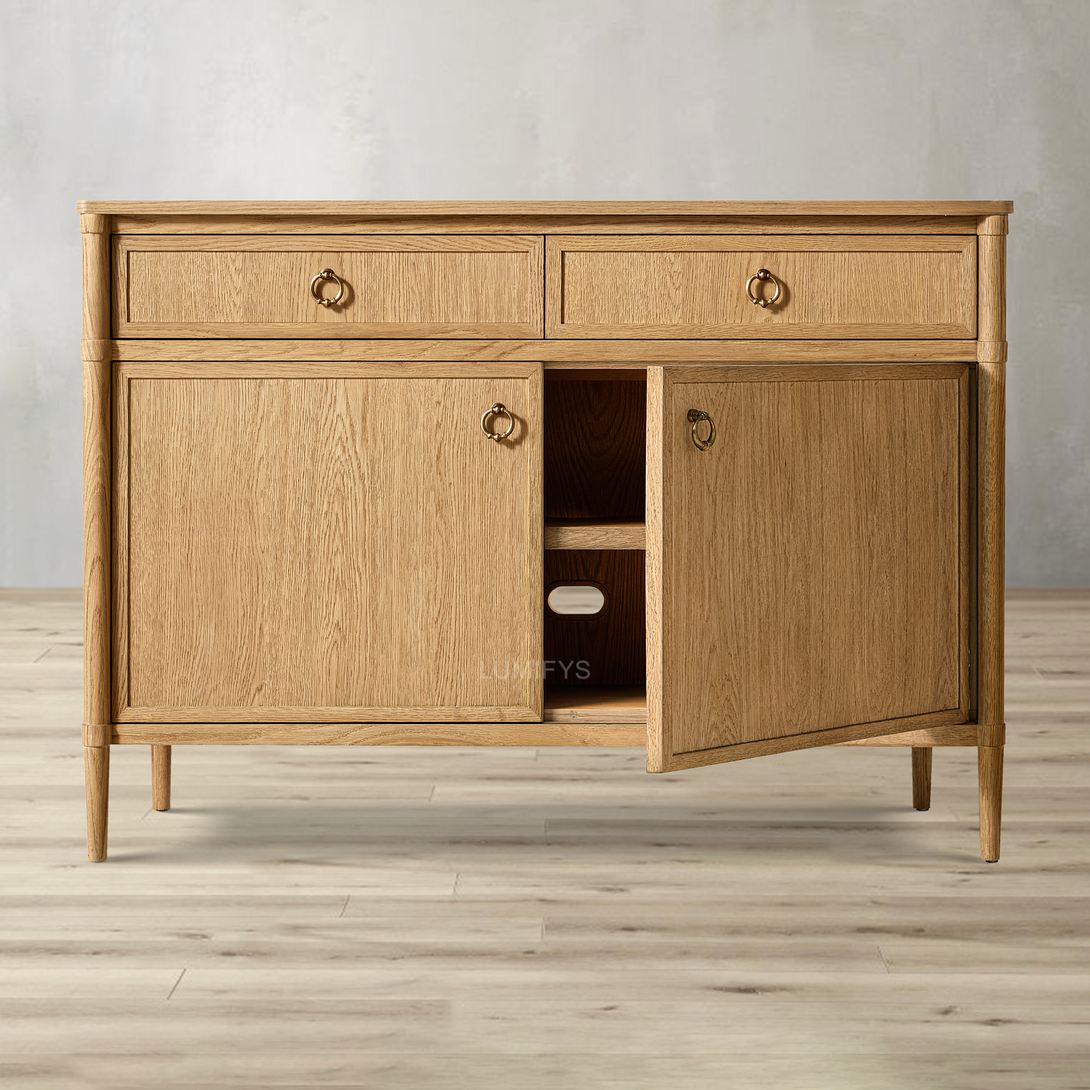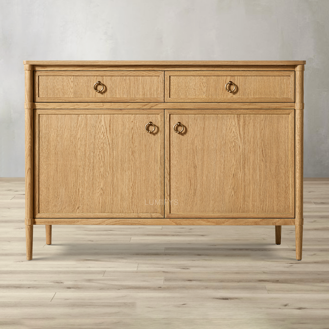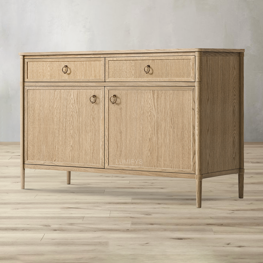 - Handcrafted of solid wood and engineered wood with European white oak veneers