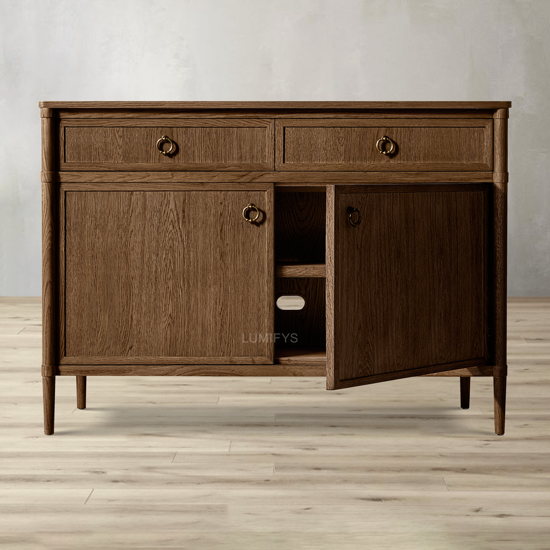 - 2 English-dovetailed drawers with soft-close glides; drawer interiors are fully finished