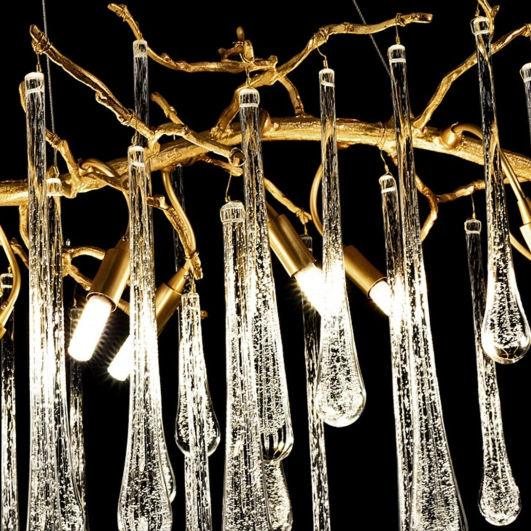 The whole light body is made of high-quality K9 crystal and copper. It is designed in a luxury modern branch style. It is absolutely stunning no matter light turns on or not.