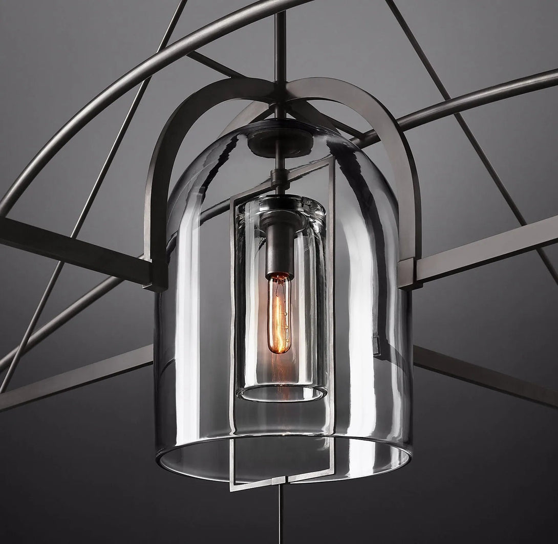 Ancient scales and other measuring instruments inspire this series in which blown glass clocks and spheres are suspended from metal frames in a state of perfect balance. Blurring the line between illumination and sculpture, each piece is a radiant focal point and a powerful symbol of balance.
