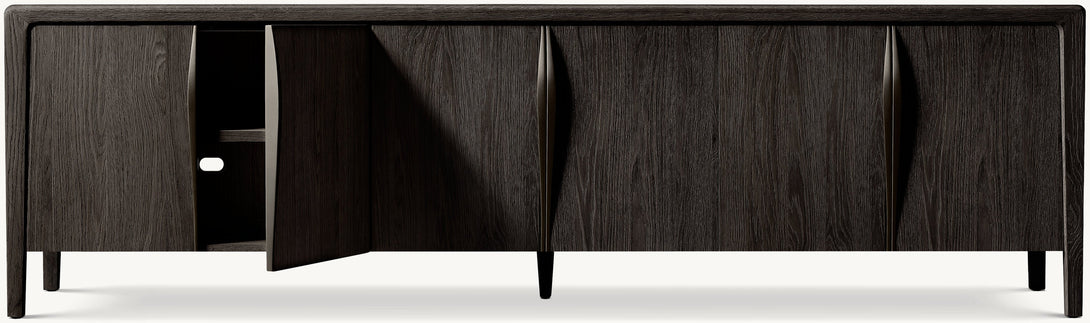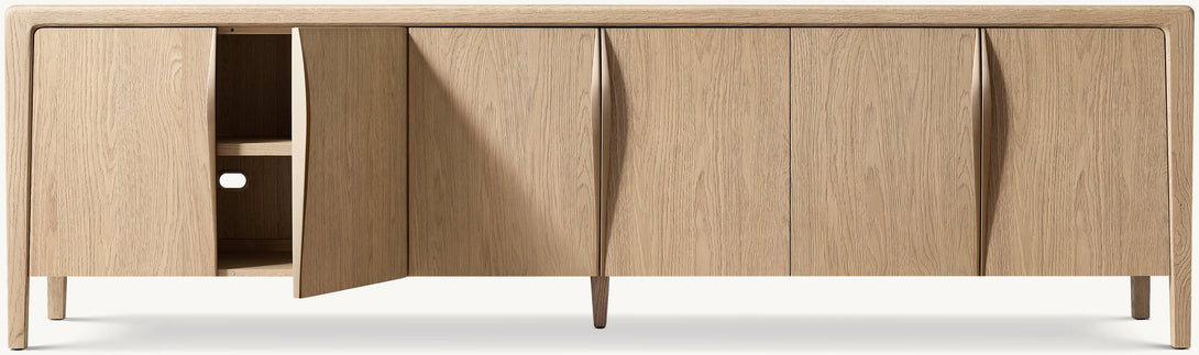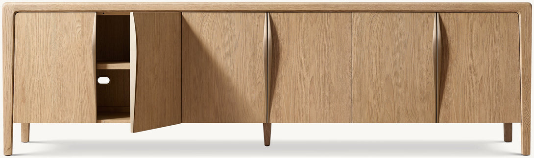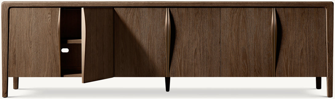 - Our media consoles are designed to display a television at eye level while seated, allowing 4" to 6" clearance between console and bottom of screen for optimal viewing height