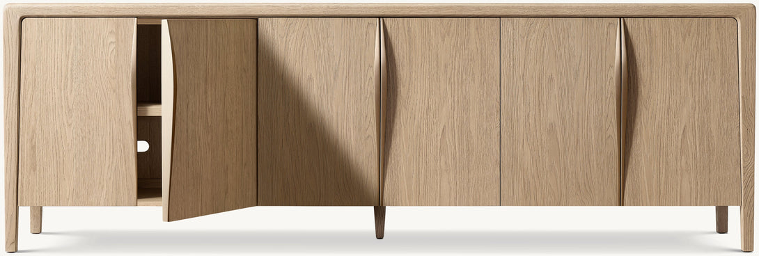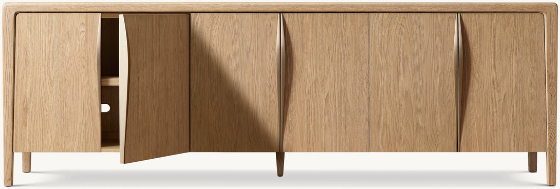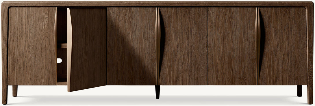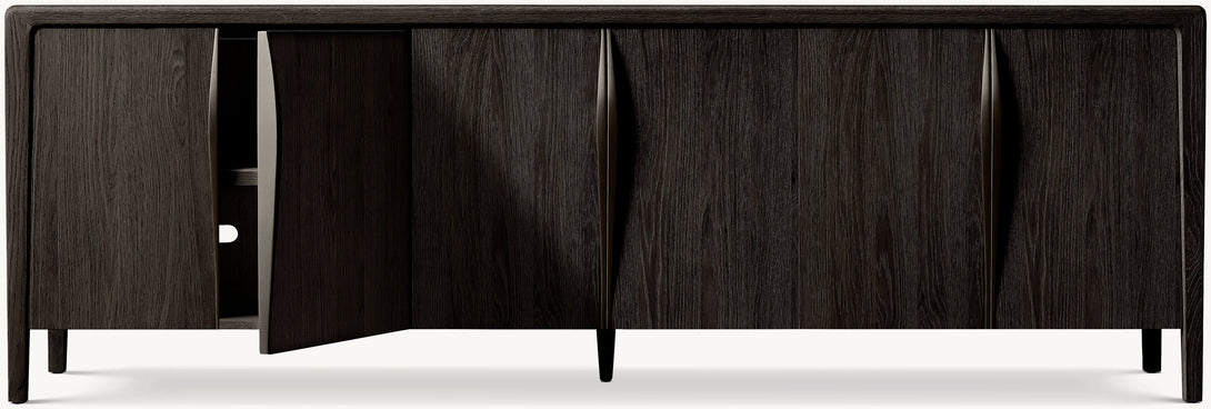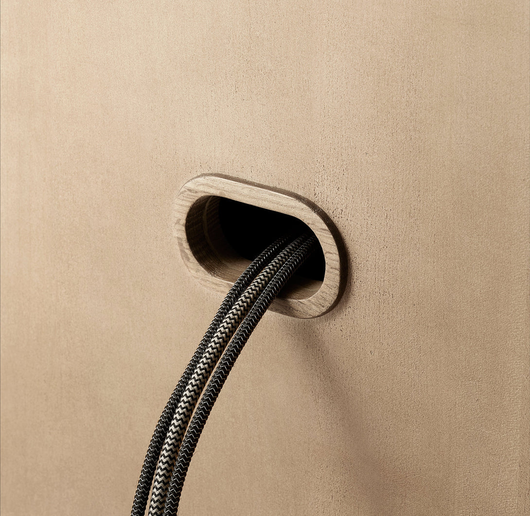 - 3 cord cutouts in back panel for wire management (1 per section); cord cutouts have wood grommets in a complementary finish