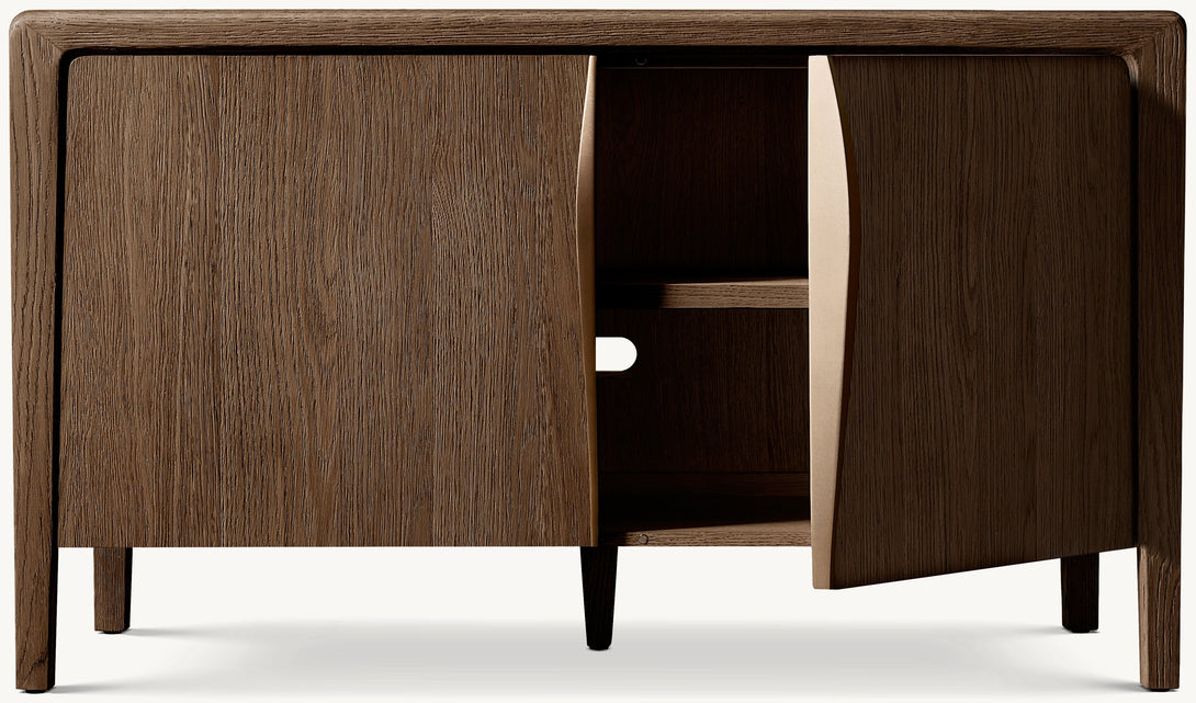 - Our media consoles are designed to display a television at eye level while seated, allowing 4" to 6" clearance between console and bottom of screen for optimal viewing height