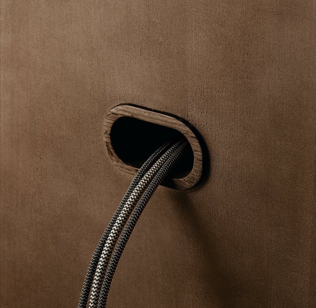 - Cord cutout in back panel for wire management; cord cutout has a wood grommet in a complementary finish