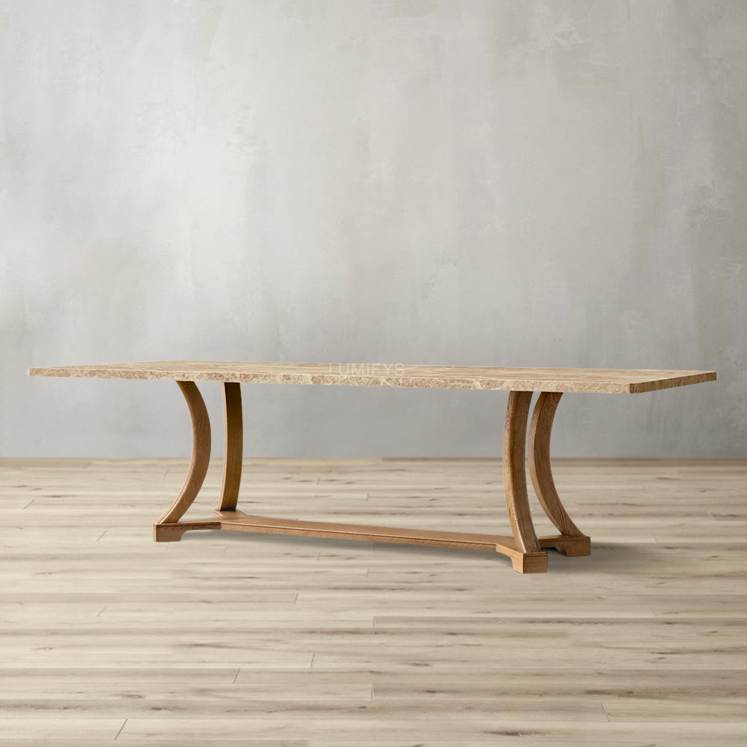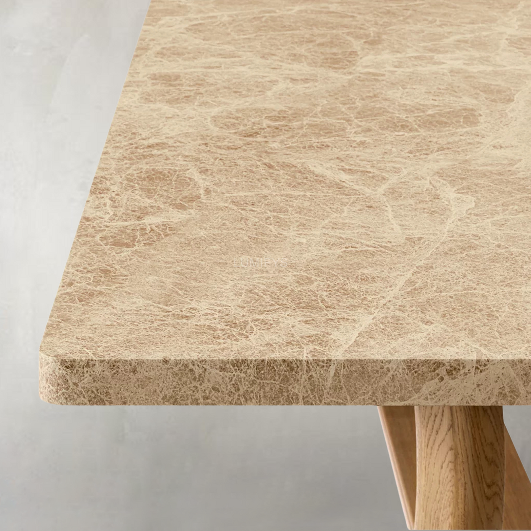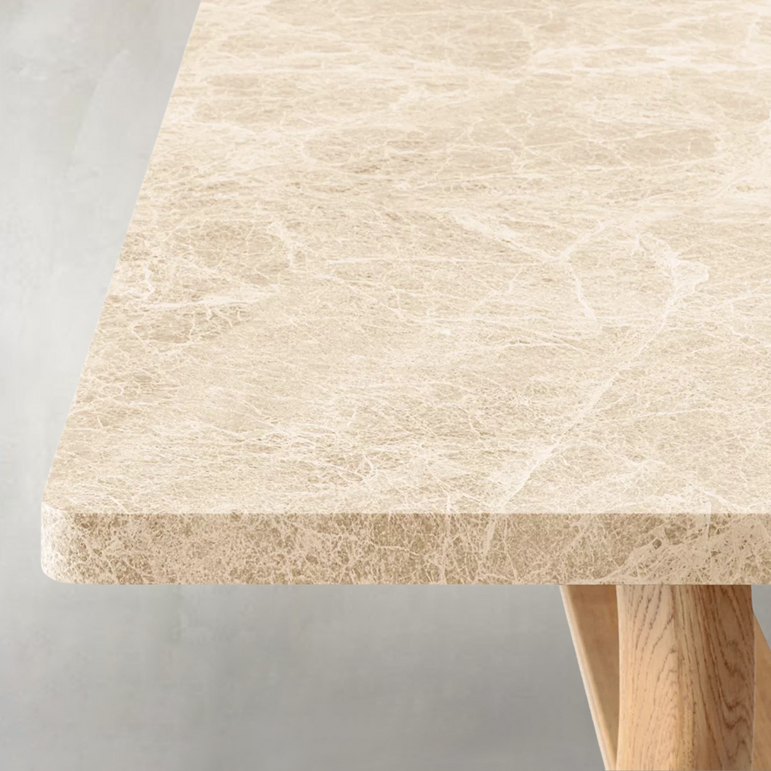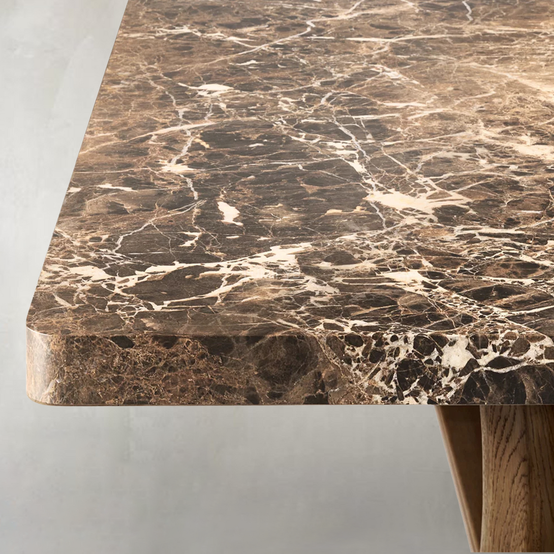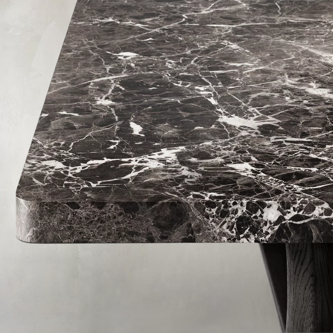 - Tabletop is crafted of ⅛"-thick Spanish or Turkish marble over an engineered wood core