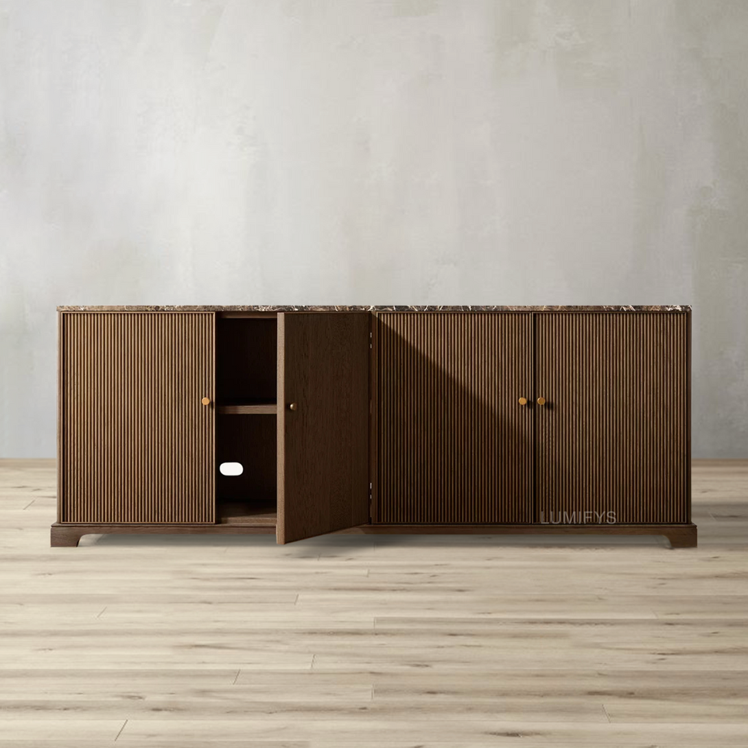 - Back of sideboard and cabinet interior are fully finished