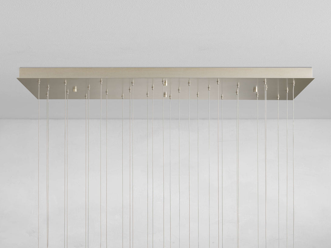Capture the beauty of falling stars casting a stunning glow in your home with our Gianna Chandelier. Featuring thin, adjustable PVC cables that are customizable to your space, each drop juxtaposes industrial materials with exquisite natural selenite stone shades. When illuminated, the drops appear to be floating in midair—creating a unique and elevated statement in any room.