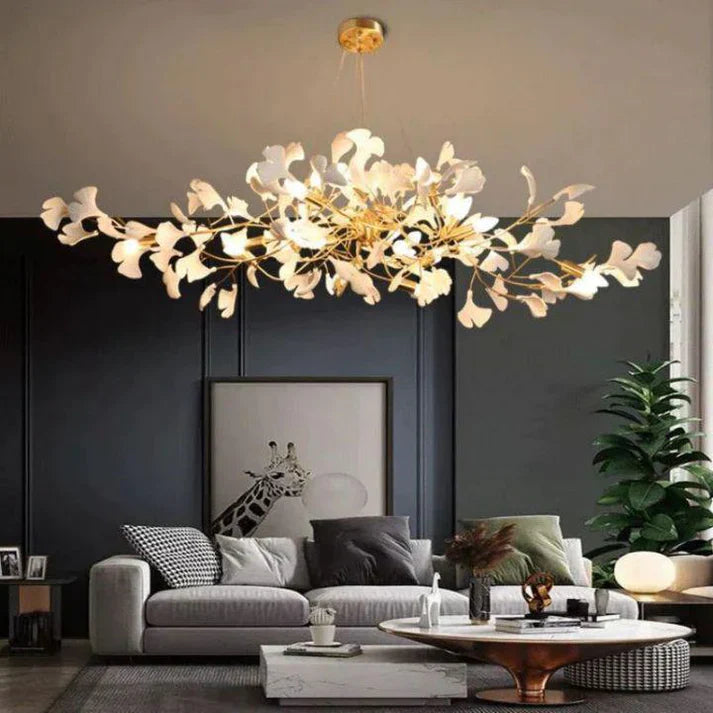 This Ceramic Ginkgo Round Chandelier shows its luxurious style in overall design, material, and manufacturing technology. It will stand out among many lighting styles. The metals lamp body is covered with exquisite ceramic petals, which reflects the perfect combination of lighting design and natural plants. The surrounding ceramic petals unfold outward, lifelike. Fine workmanship. Each chandelier is a unique art.