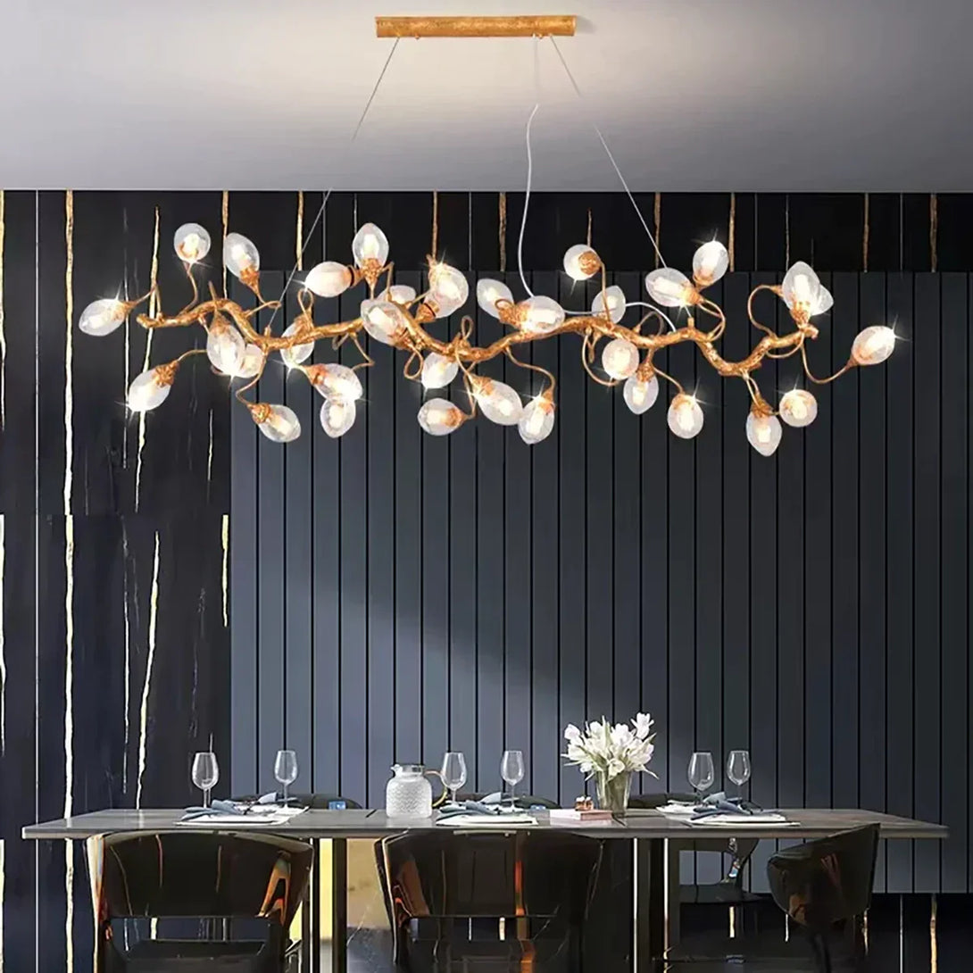 This chandelier marries artistic elegance with practicality. Its transparent glass design, reminiscent of delicate eggs, features captivating bubble accents. Ideal for dining rooms, kitchen islands, or living rooms, this chandelier illuminates spaces with a gentle glow, creating an ambiance of sophistication and charm. Embrace contemporary style and functionality with this stunning centerpiece, perfect for enhancing any modern interior.