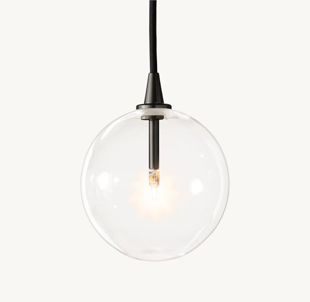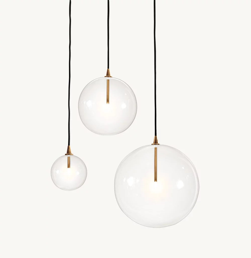 Delicate, handblown glass globes float like orbs at the ends of solid brass rods in our collection by designers Rudi Nijssen and Dominique Sente. Crafted in Poland by master glassmakers, each fixture conveys fluidity and motion yet is anchored in the pure modern architecture of its form.