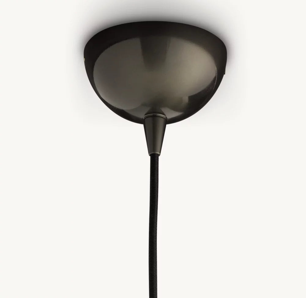 - Hangs from a black fabric cord; cord may be shortened at time of installation