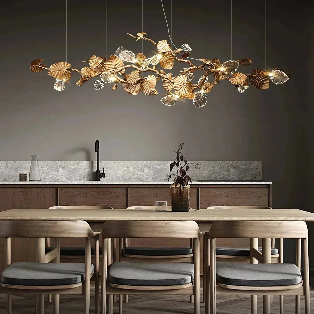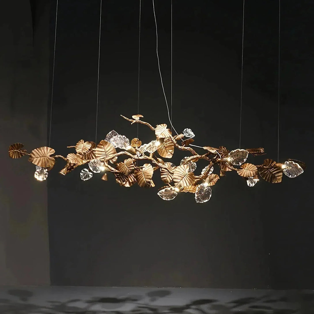Born out of the dense and untamable tropical forests, the Gold Leaf Chandelier plant serves as the inspiration for new collection, to which it also lends its name, its elegance, and its graciousness. Gold Leaf Chandelier represents the gentil and delicate movement but imbued with the vital energy that runs through every element of Nature, making them unique. |