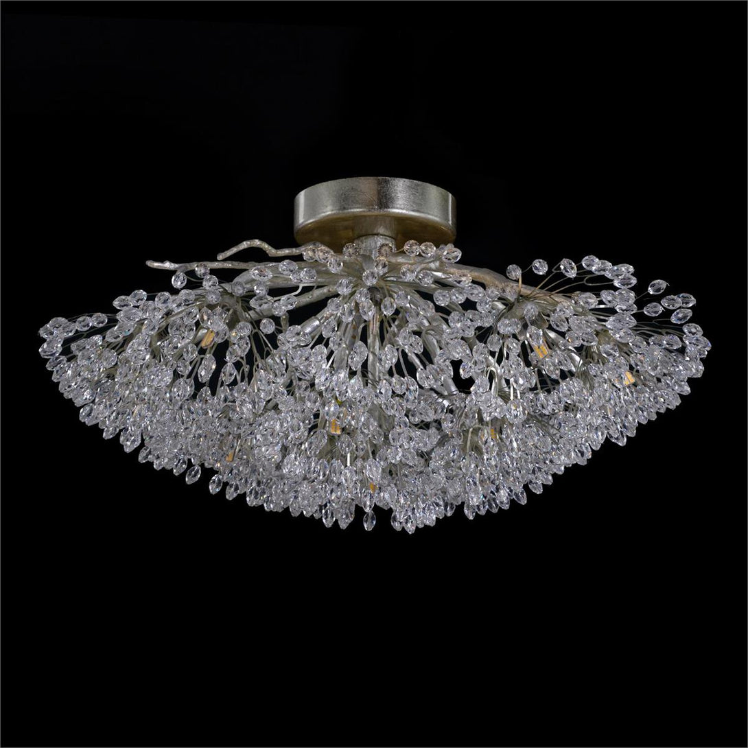 The Hanasaku Flower Sixteen-Light Flush Mount captures the essence of growth and renewal. Inspired by the Japanese word Hanasaku (“flower bloom”), its organically shaped cast brass branches in Antique Silver Leaf extend outward to reveal clusters of hand-cut crystal flower beads. Sixteen LED lights bring both brilliance and artistry, making this piece a luminous focal point for dining rooms, living spaces, or entryways.