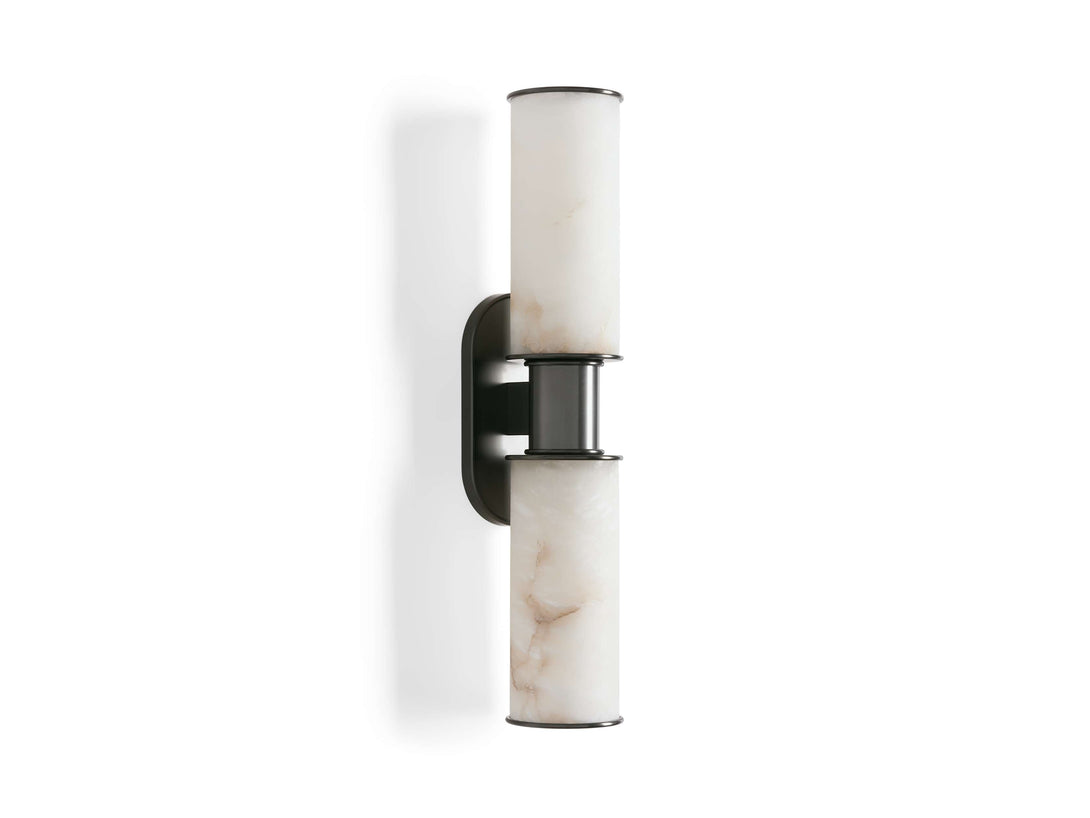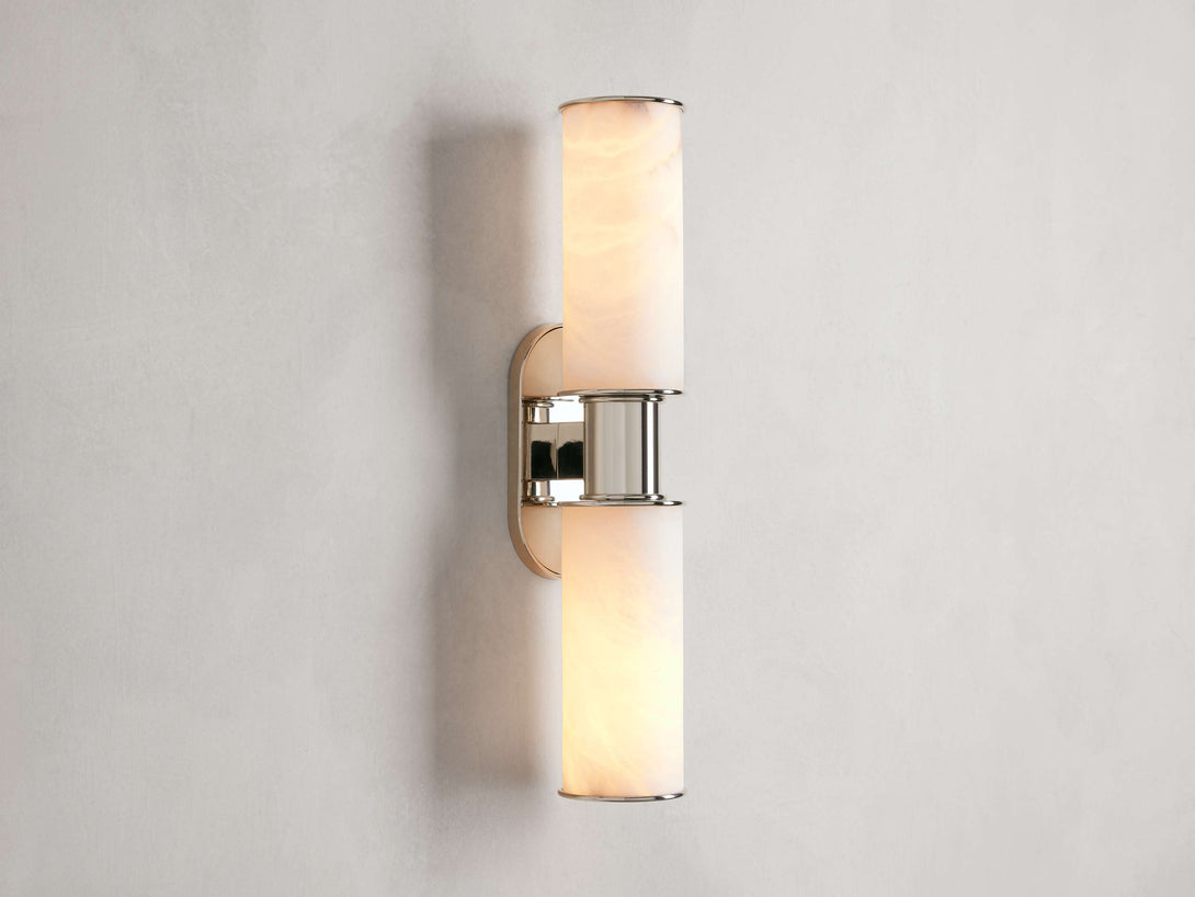 - Harlin is an Arhaus exclusive lighting collection crafted from steel and brass with a polished nickel, bronze plated, or burnished brass finish with an alabaster stone cloche to complement your bathroom aesthetic.