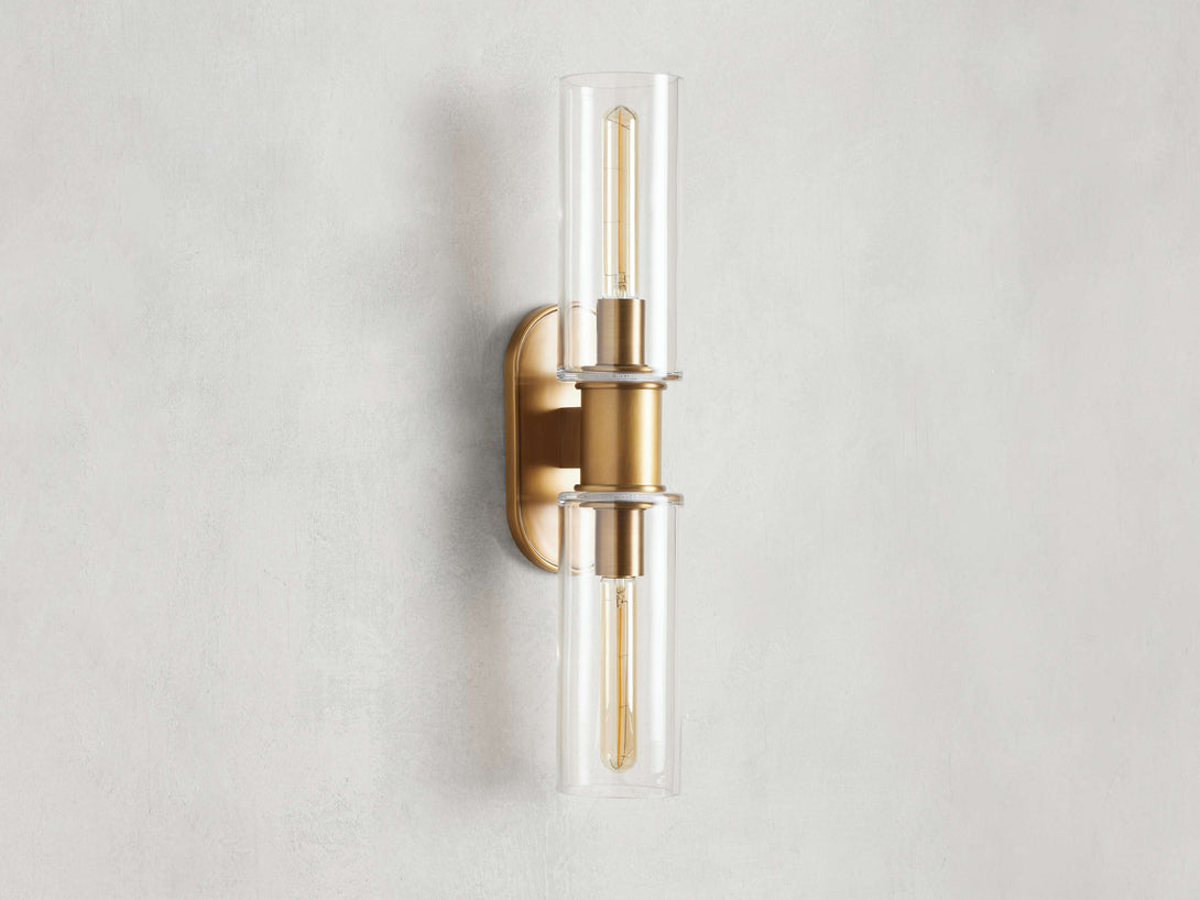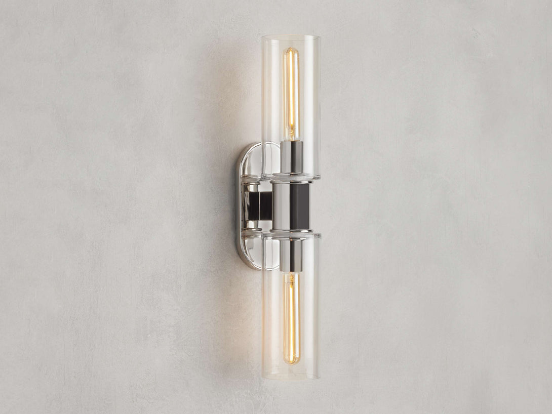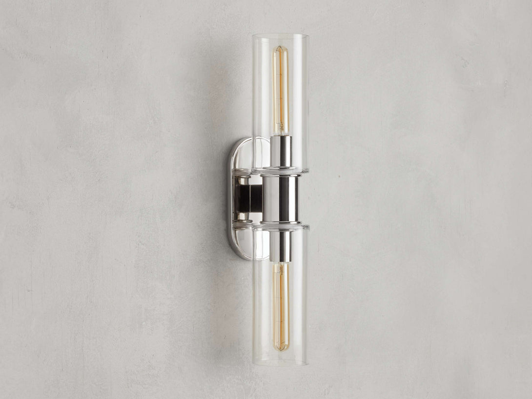 - Harlin is an Arhaus exclusive lighting collection crafted from steel and brass with a polished nickel, bronze plated, or burnished brass finish with a clear glass cloche to complement your bathroom aesthetic.