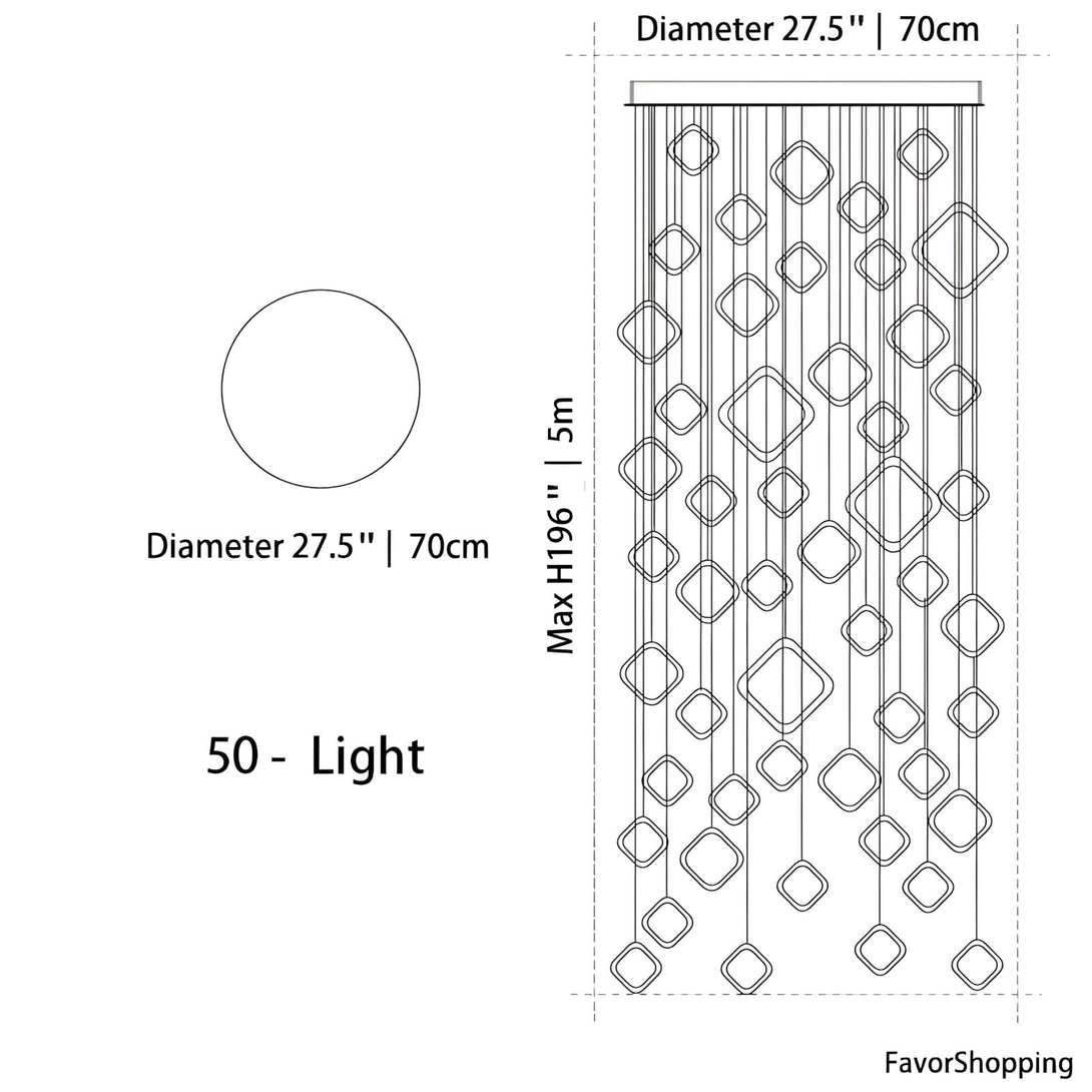 - 50 Lights: 27.5" / 70cm D x 196" / 500cm H