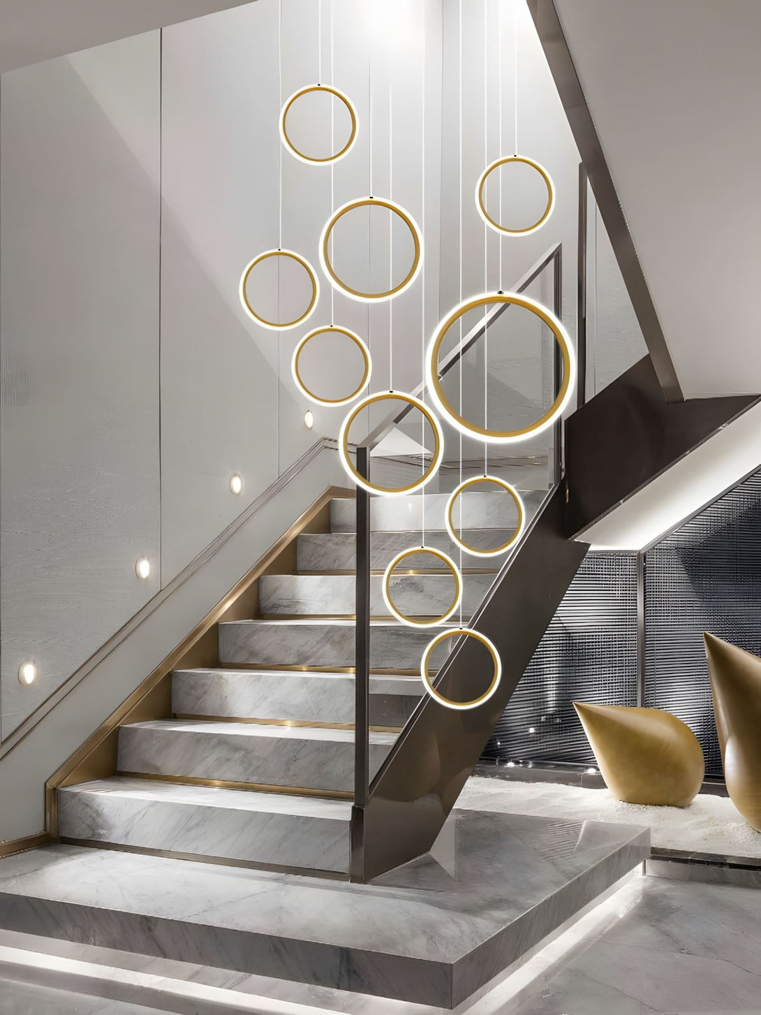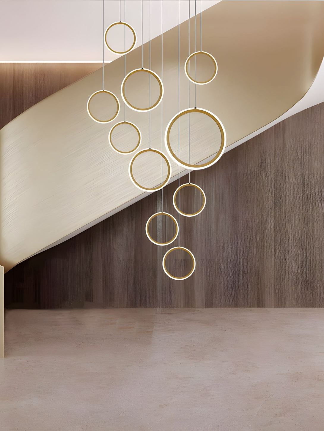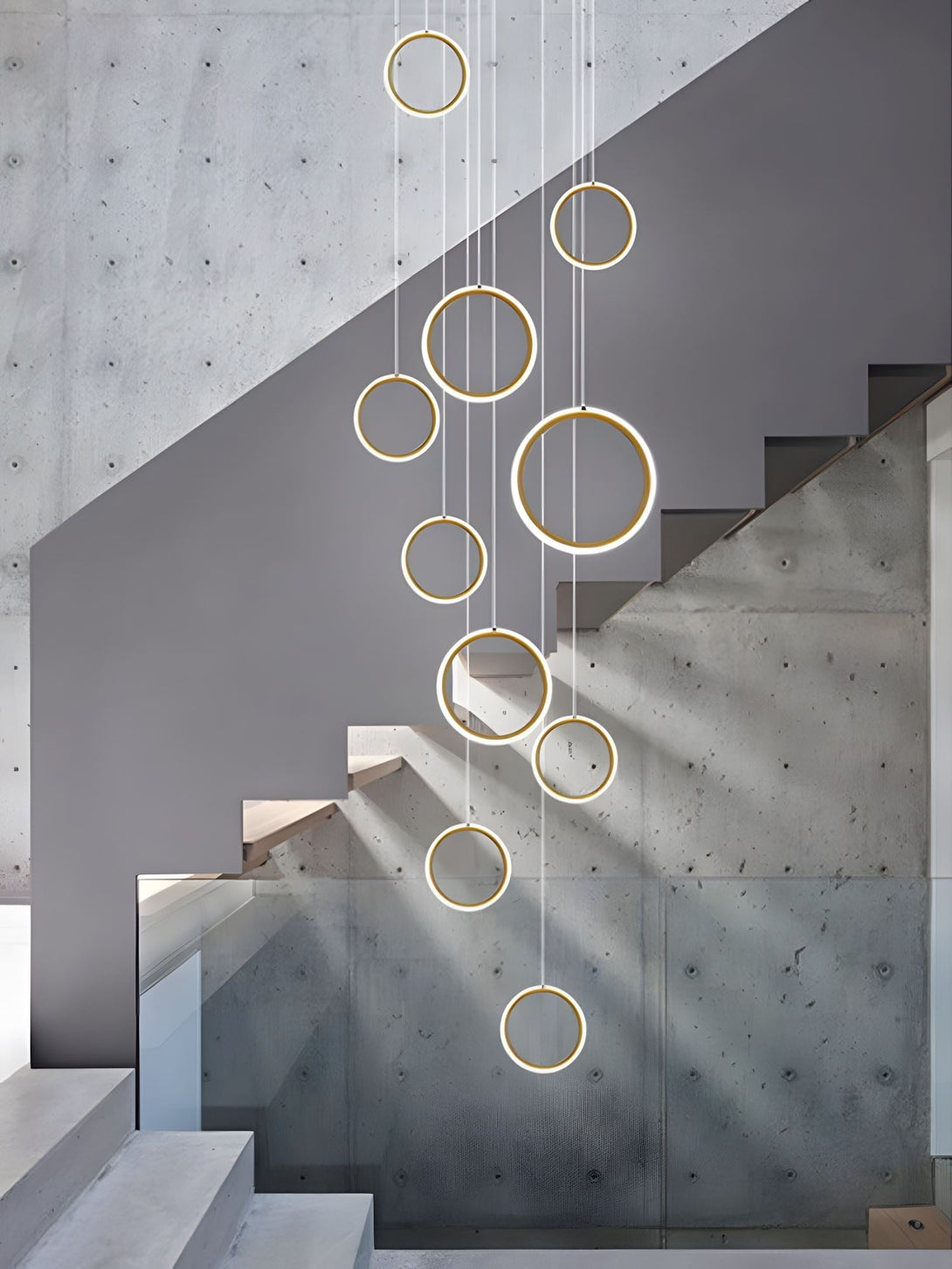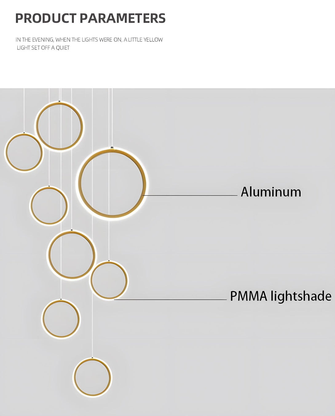 Meet Hedron, a refined and modern masterpiece that captures the essence of simple yet compelling design. Hanging gracefully in an asymmetrical fashion from a thin wire, each element is meticulously arranged for optimal reach and balance. The centerpiece is a robust aluminum ring, casting a vibrant array of finishes and colors to illuminate your space. Elevate your home with this contemporary marvel, introducing both elegance and a playful touch to your living area.
