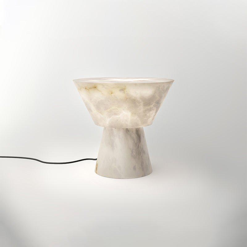 Elegant table lamp with graceful curves and sleek lines. The base and lampshade. separated by a delicate golden brass trim. exhibit precise edges and perfect proportions. while the illuminated alabaster upper body adds timeless elegance to this contemporary creation.