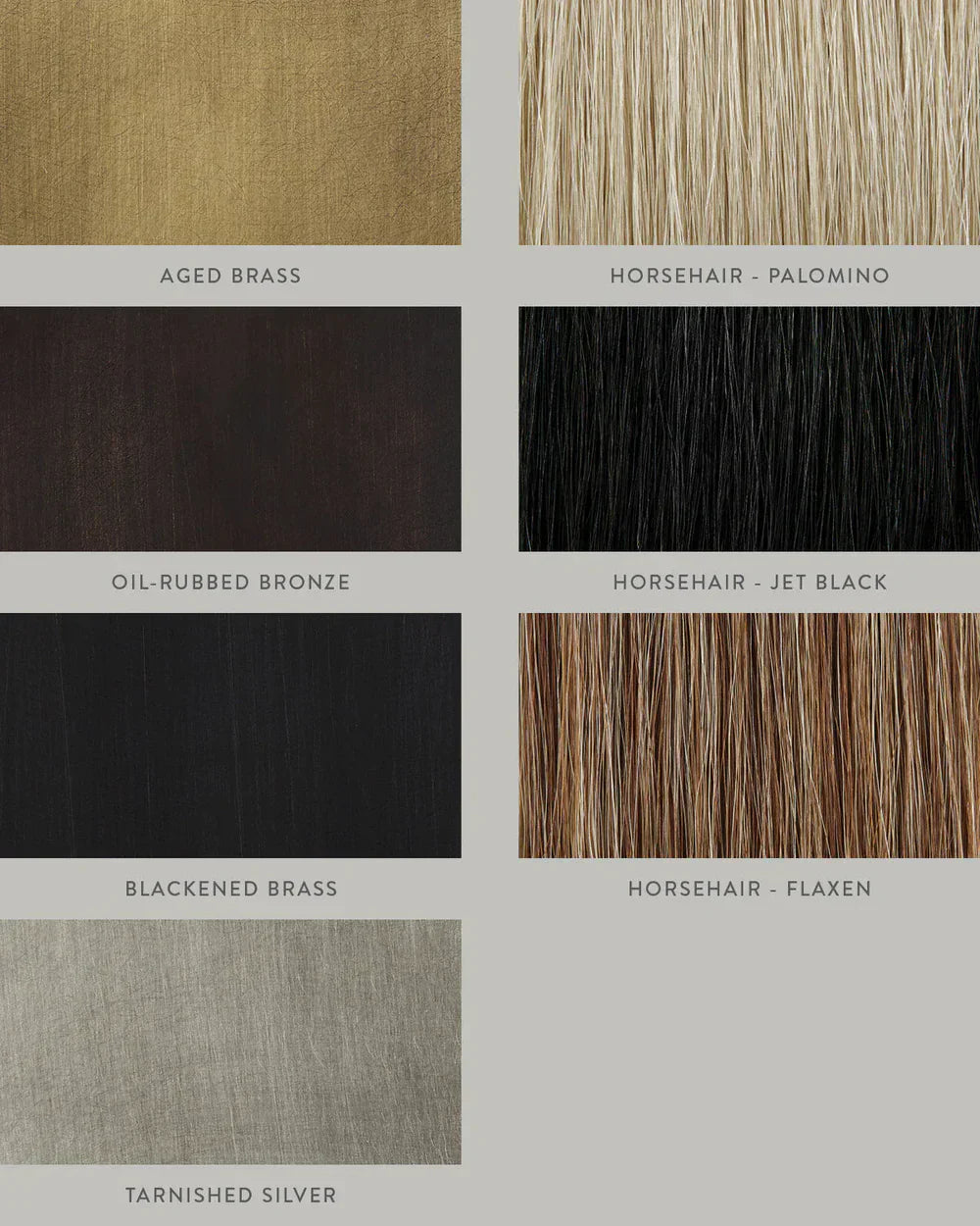 - Body Finishes: Aged Brass / Oil-Rubbed Bronze / Blackened Brass / Tarnished Silver