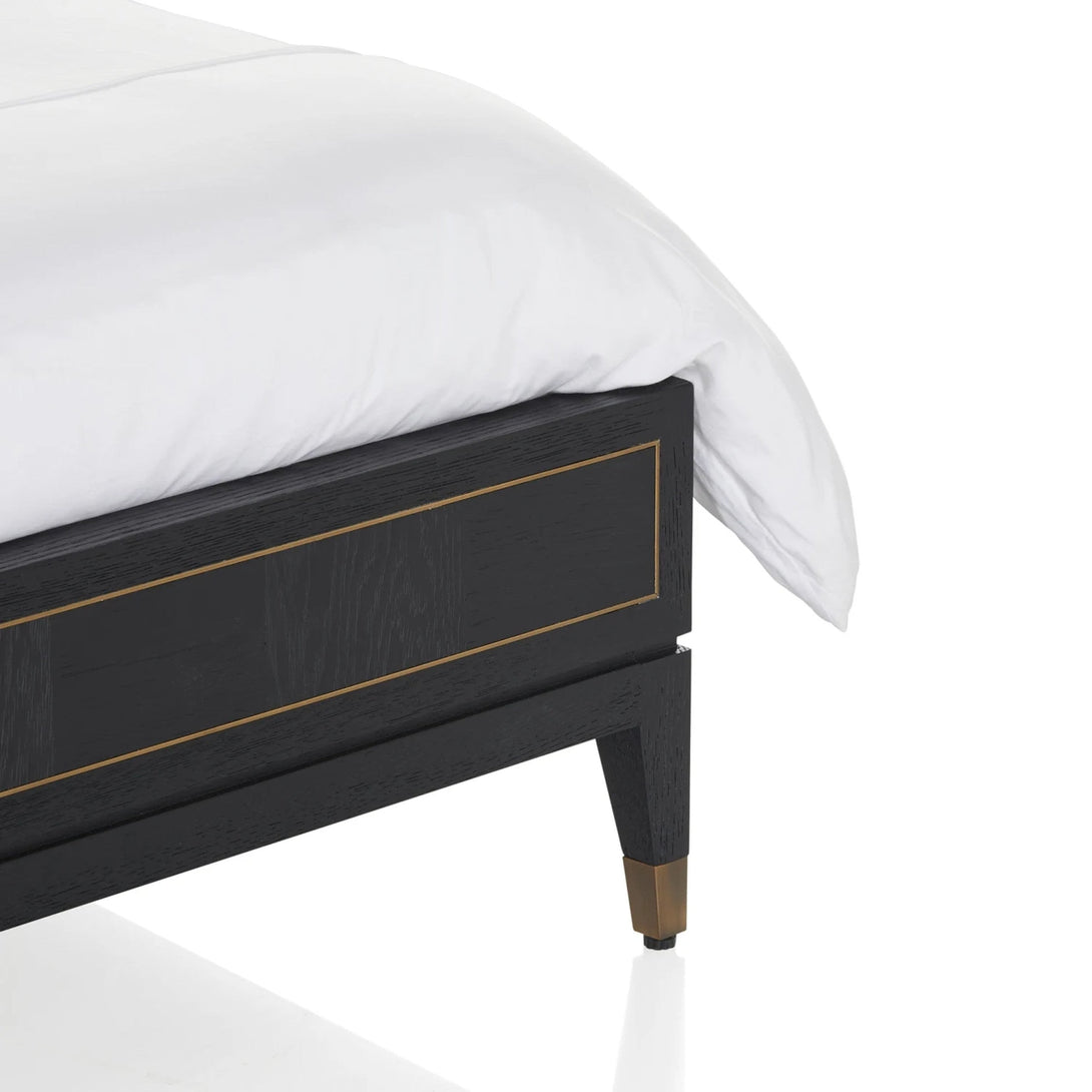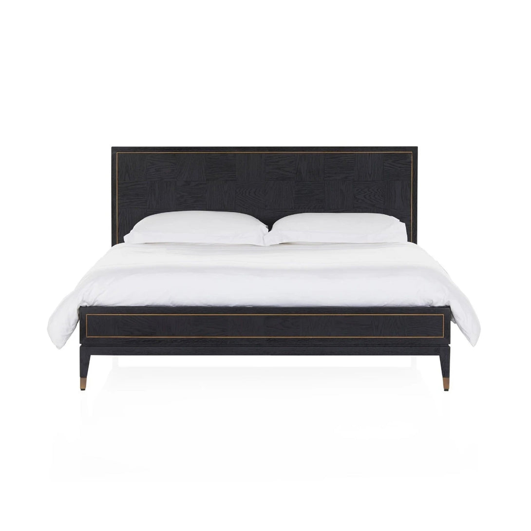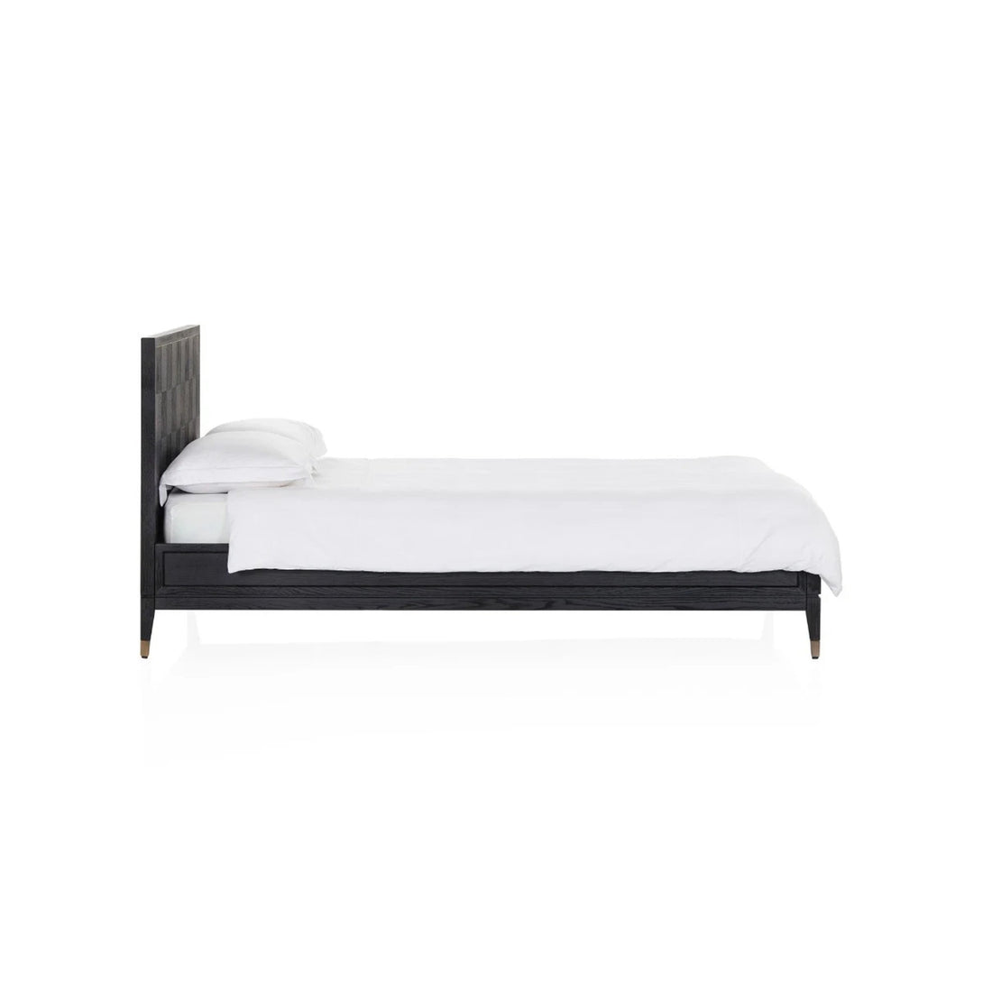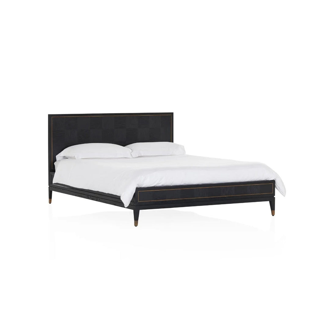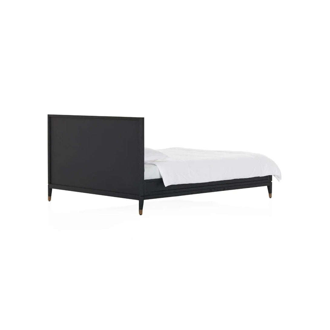 A sophisticated bed frame in elegant square timber paneling with metal accents.|A sophisticated bed frame in elegant square timber paneling with metal accents. A range extension on Coco Republic's Hermitage collection this transitional bed design can be dressed up or down. Also available in a standout four-poster bed frame in Queen and King sizes. Note: Maximum mattress weight limit: 90 kg. Maximum static weight limit: 315 kg.