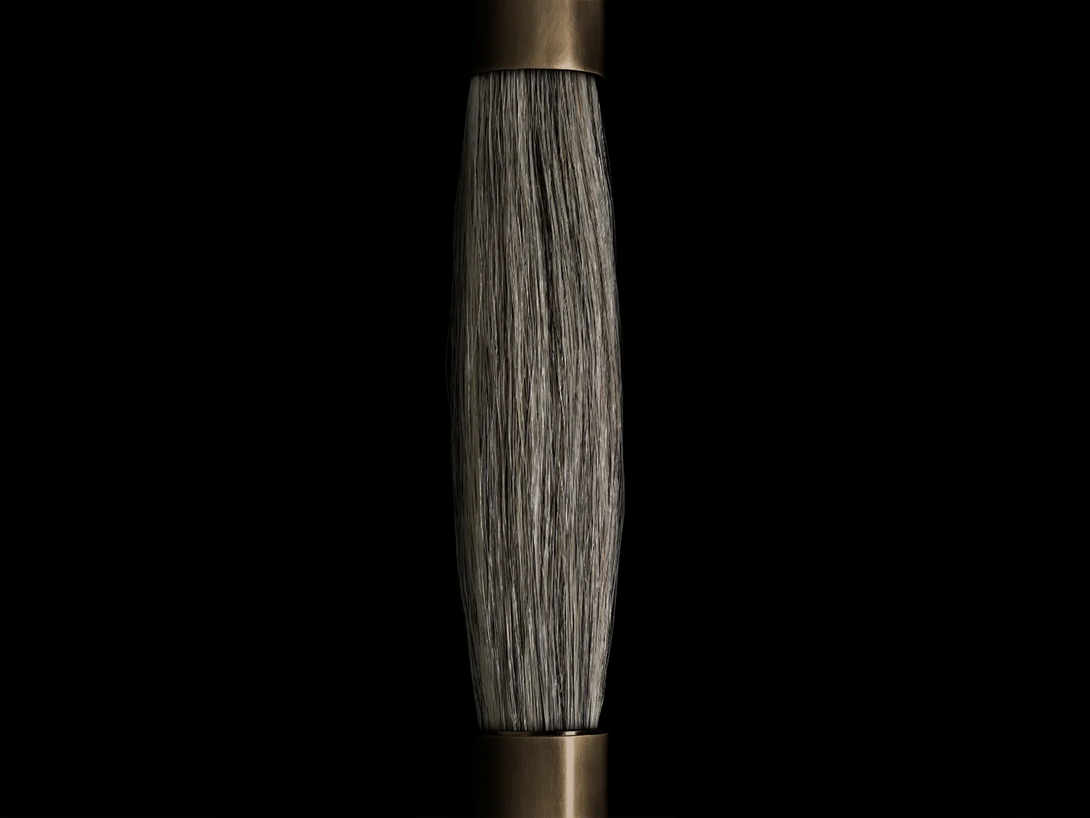 This Horsehair Sconce combines horsehair, brass, and etched glass for a unique design and exquisite materials. The warp of the horsehair combines with the brass body of the lamp to create a visual effect that is both sturdy and elegant.