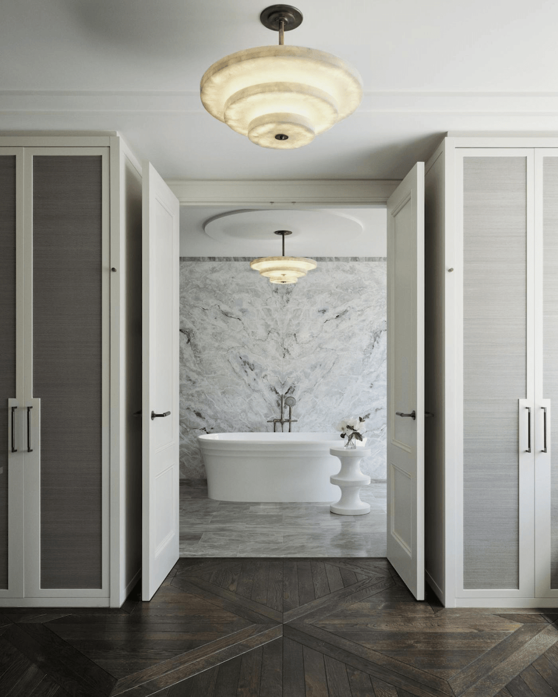 The Ice Queen Alabaster Chandelier showcases a refined tiered design with three smooth alabaster layers that gently diffuse light, producing a warm and inviting ambiance. Its classic round silhouette, enhanced by subtle veining, reflects timeless elegance and luxury. Suspended from a brass metal canopy, this fixture offers a striking contrast that highlights the natural beauty of the stone, making it an expert choice for sophisticated interiors.