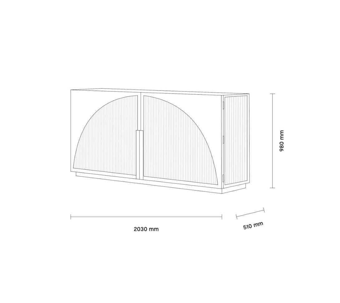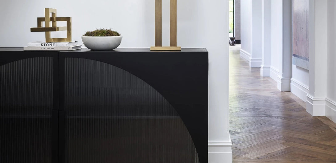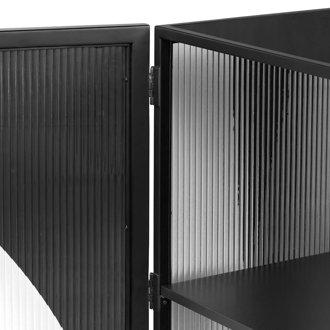 Contemporary steel frame sideboard with fluted glass.|Referencing french romanesque architecture with its distinctive round arches and strong angles the Isabella Sideboard makes an impressive statement with its matt black steel frame and fluted glass.