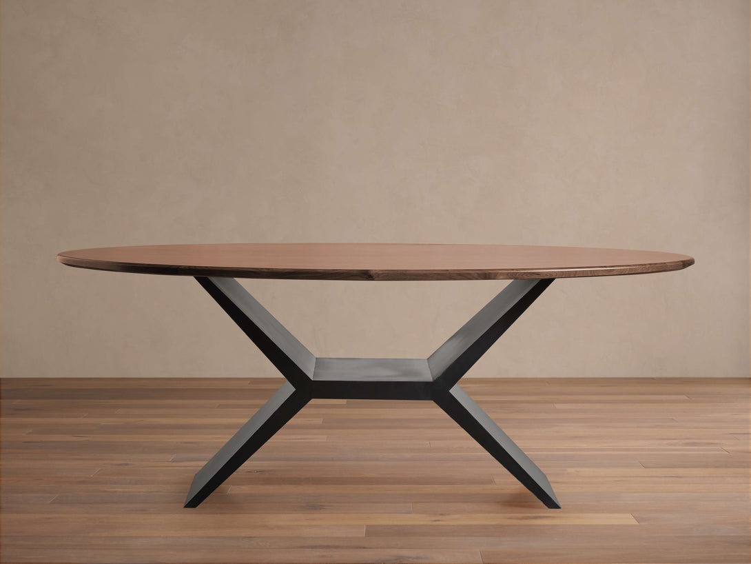 Our Jacob Dining Collection celebrates craftsmanship with sleek and modern style, bringing natural wood into contemporary dining spaces. Tabletops are made from solid oak and walnut, handcrafted by a community of Amish artisans. Oils, stains, and varnishes are applied to each tabletop by hand, creating high-gloss finishes that accentuate the wood’s natural beauty. Vertex Table Bases are made from iron in a subtle, flat black finish to complement the beautiful tones of the wood.