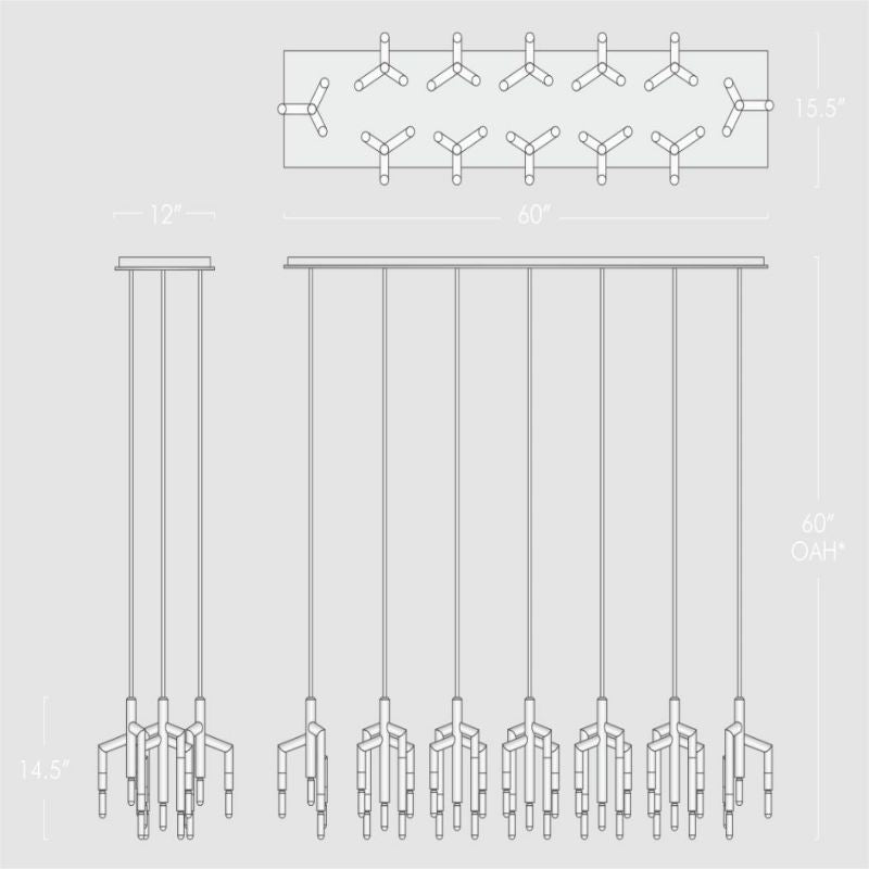- Chandelier Body: 60 W x 15.5 D x 60 OAH*