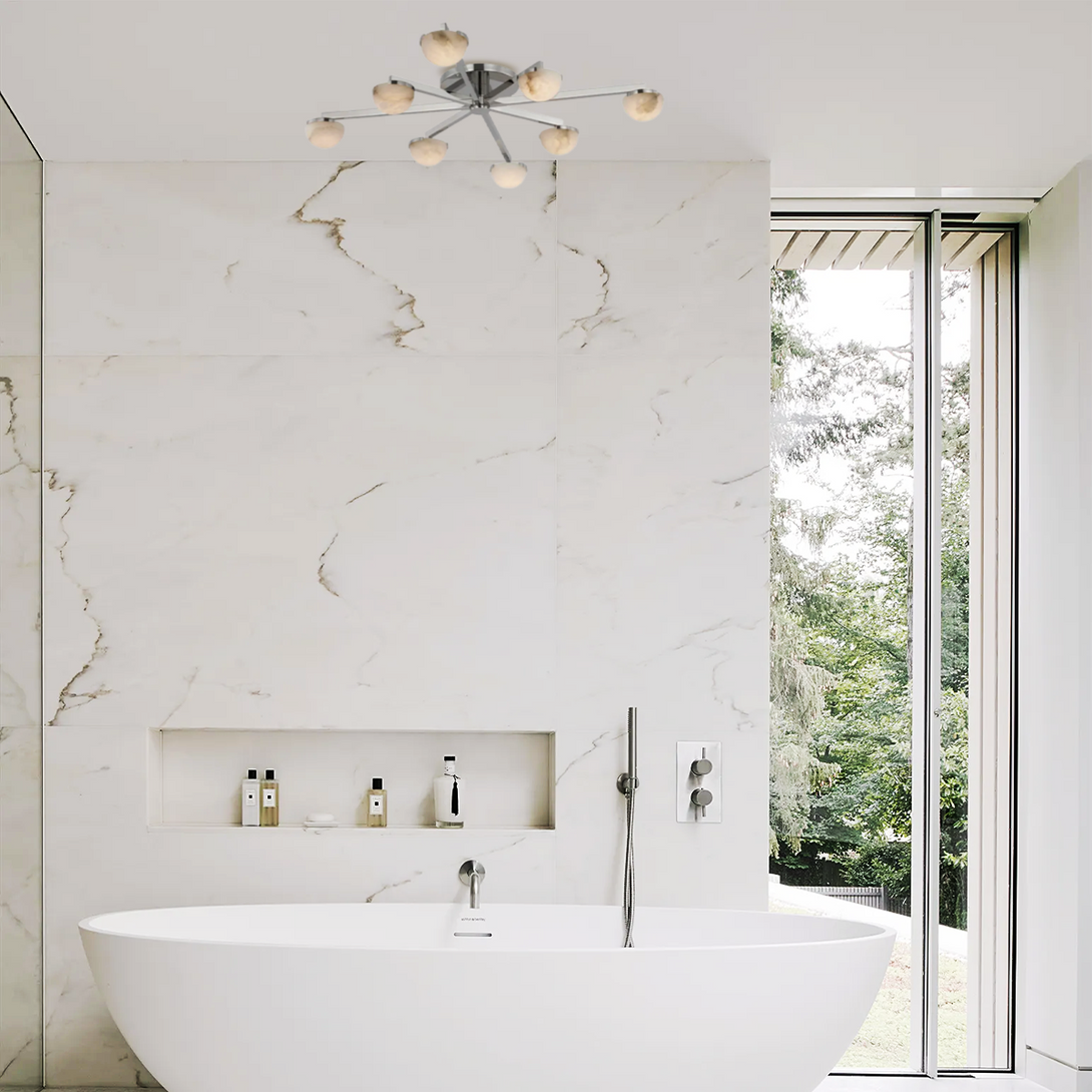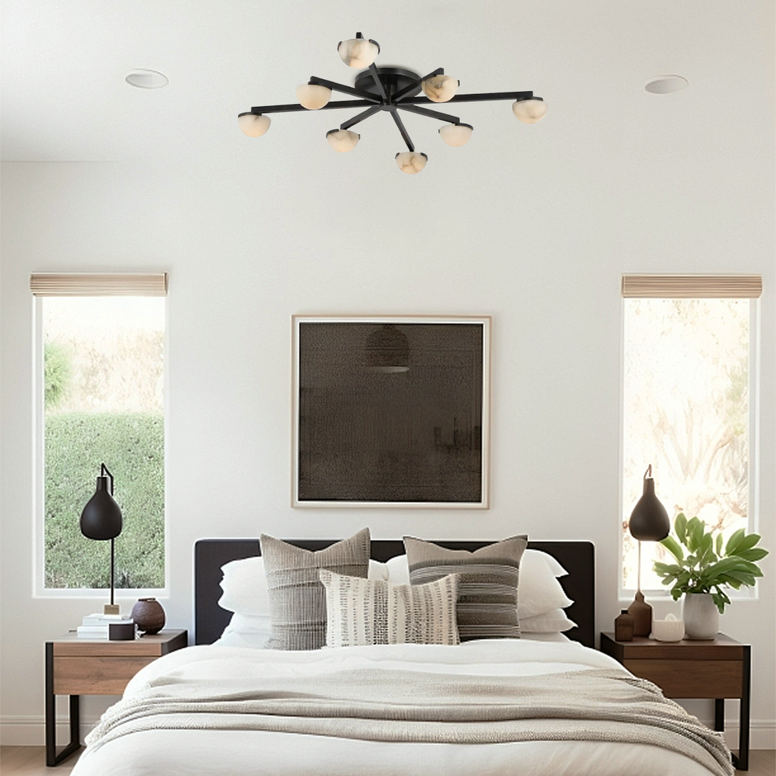 The material of alabaster is marble and copper, this series is a simple design with a modern style, its stylish style highlights its beauty and makes it give a warm and natural feeling while ensuring the light effect Feel.