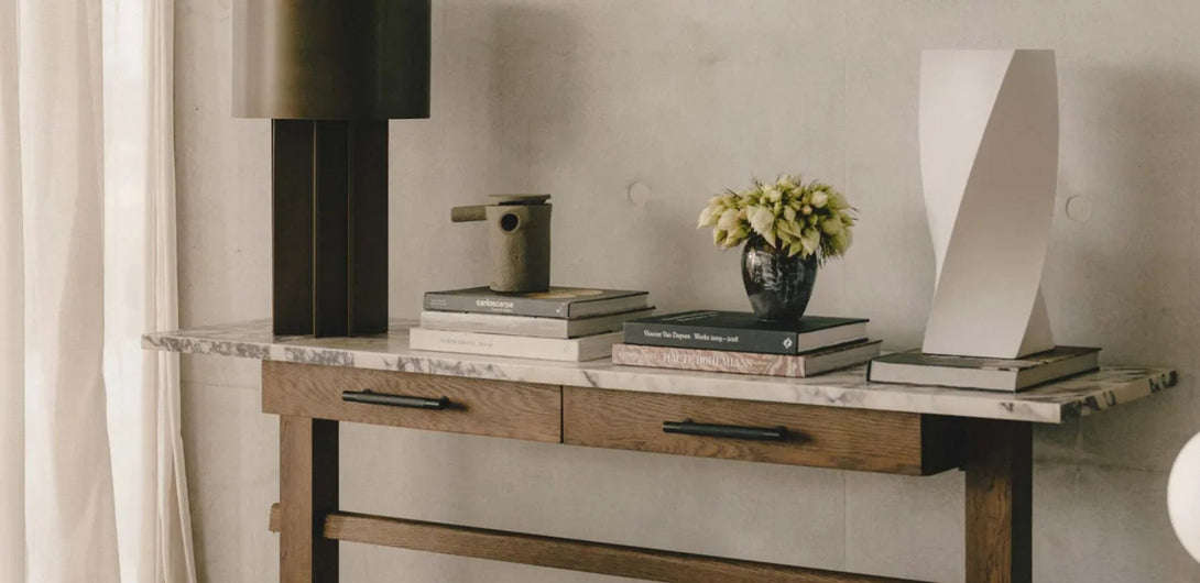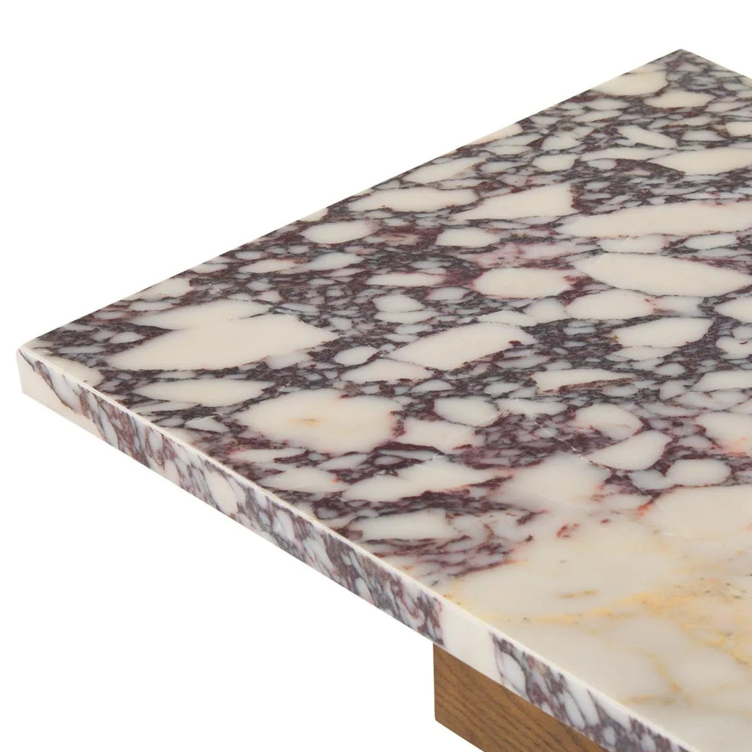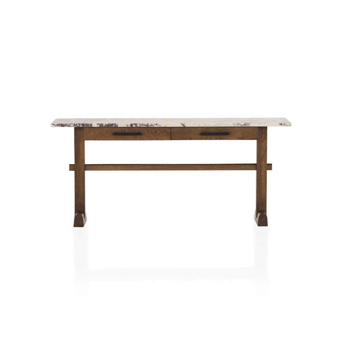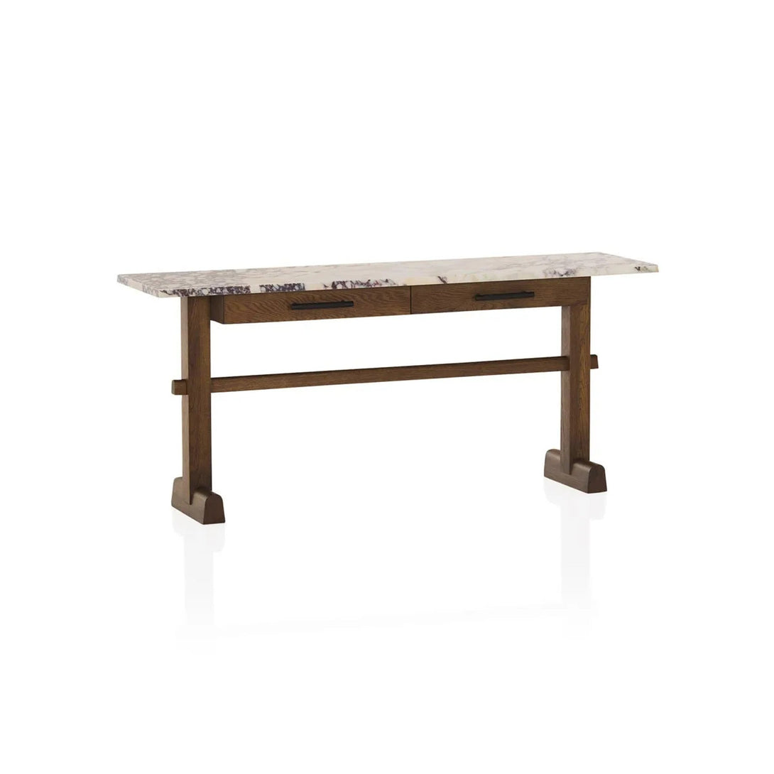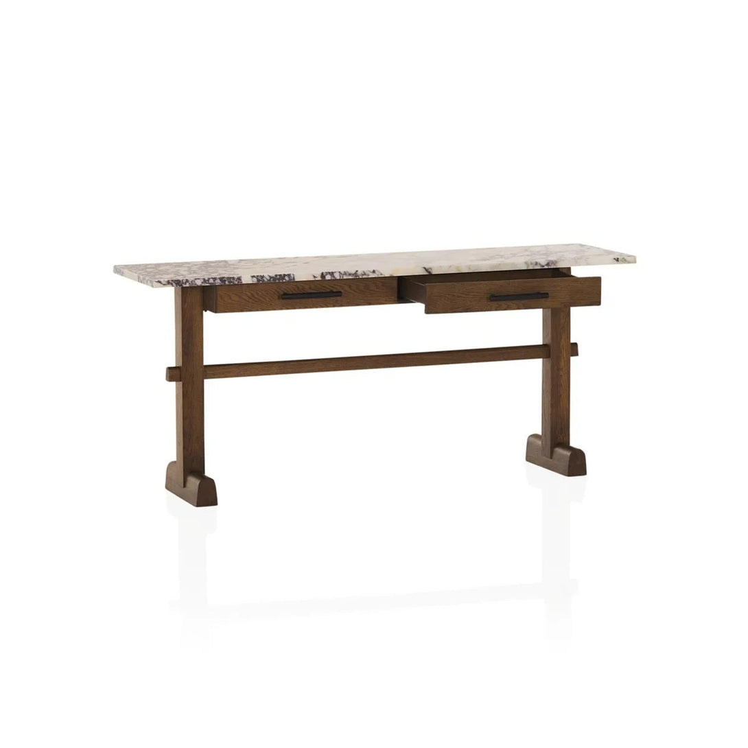 MATERIALS & CONSTRUCTION INFORMATION | Top: Calacatta Violetta marble Finish: Honed Construction: 5mm marble + 17mm plywood Frame: Solid Oak Drawers: Plywood with Oak veneer in Smoked Oak Handle: Stainless Steel Bronze with knurling effect - diamond pattern |